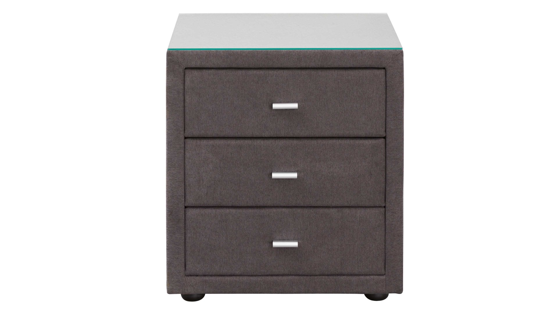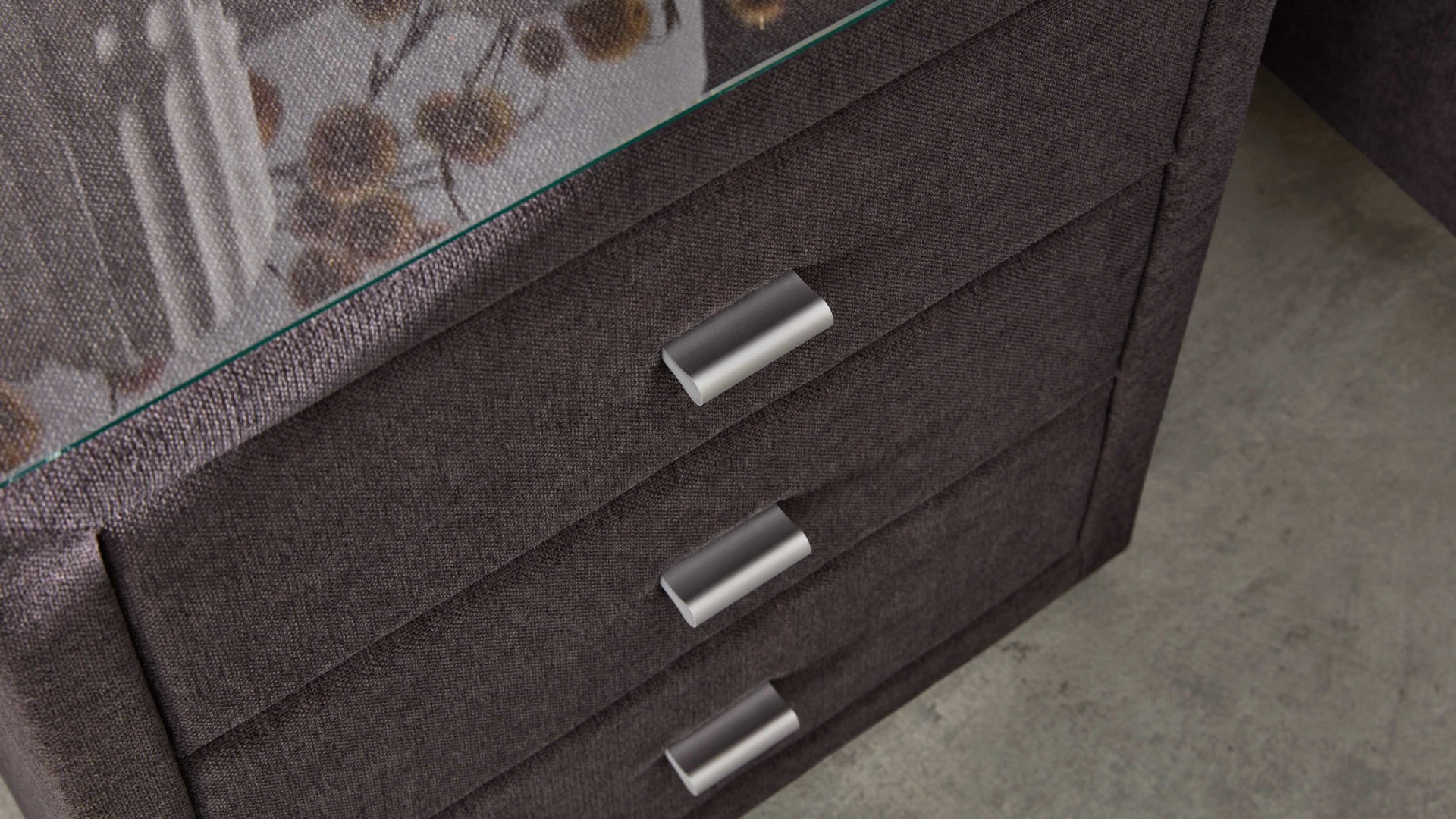 Die Nachtkommode aus der Interliving Bettsystem Serie 1414 vereint moderne Eleganz, praktische Funktion und hochwertige Verarbeitung. Mit ihrem dunkelgrauen Stoffbezug bringt sie eine ruhige, stilvolle Note ins Schlafzimmer und harmoniert perfekt mit den Boxspring- und Polsterbetten der Serie. Matte aluminiumfarbene Griffe und schwarze Kunststofffüße setzen dezente Kontraste und runden das edle Design harmonisch ab – ein funktionales und zugleich ästhetisches Beistellmöbel für dein Komfortbett. Mit Maßen von ca. 50 x 55 x 45 cm (BxHxT) ist die Schubladenkommode kompakt, bietet aber dennoch überraschend viel Stauraum – ideal für den täglichen Gebrauch direkt am Bett.