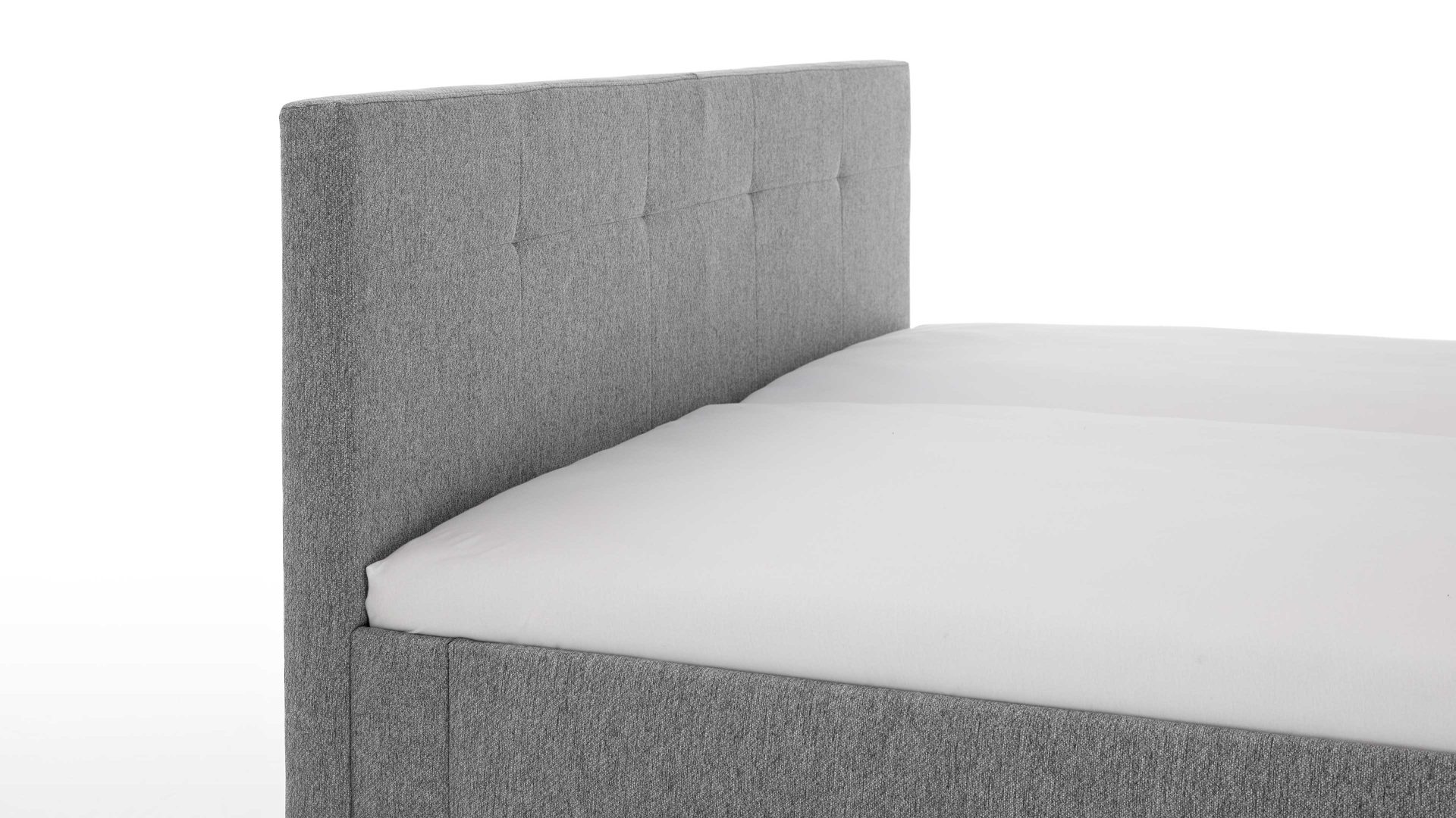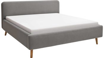 Das Polsterbettgestell Jazz ist gemütlich und stilvoll designt. Mit dem edlen grauen Stoffbezug und den eichefarbenen Holzfüßen strahlt es Eleganz mit einer Prise Natürlichkeit aus. Zu den Höhepunkten gehört das gesteppte Polsterkopfteil. Es verleiht dem Bett das gewisse optische Etwas und gibt Ihnen beim Lesen oder Fernsehen eine bequeme Anlehnmöglichkeit. Die Bettseiten sind glatt bezogen.