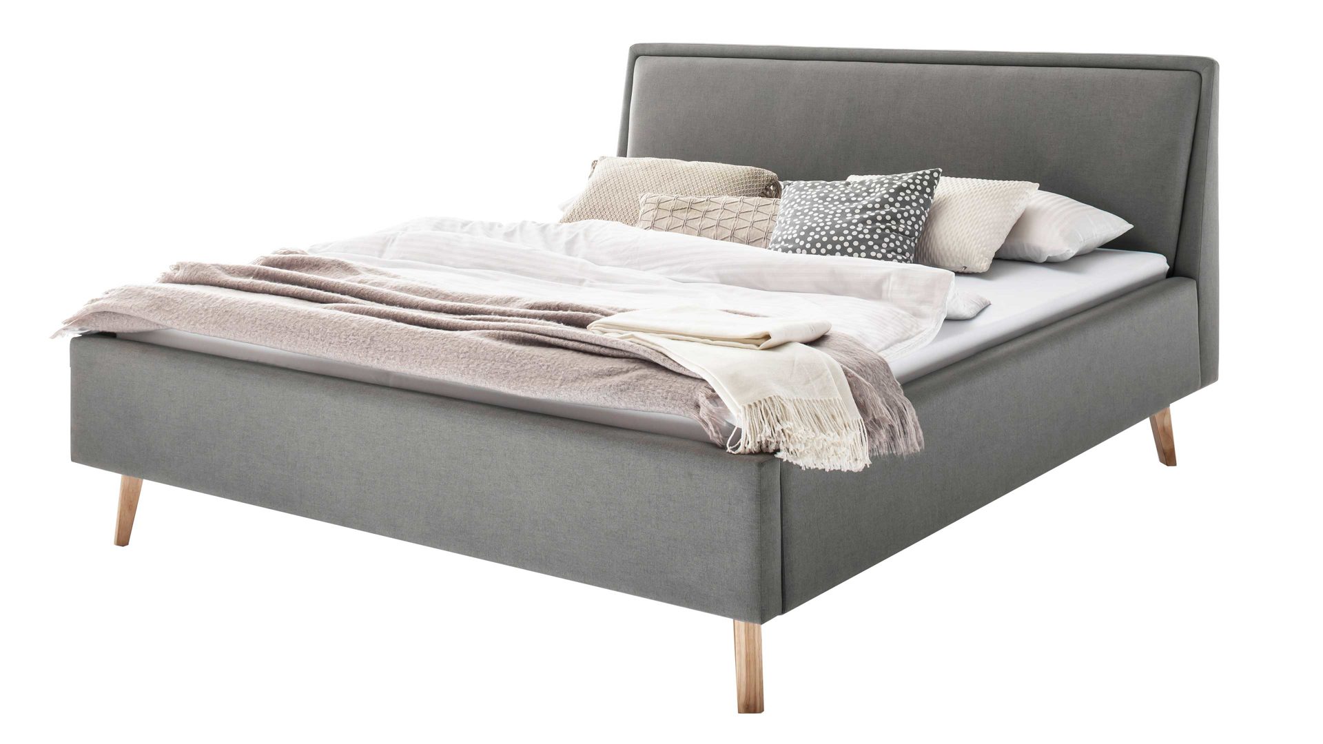 Das Polsterbettgestell Mattis begeistert durch die elegante Optik sowie die hervorragende Material- und Verarbeitungsqualität. Es kombiniert einen hellgrauen Flachgewebe-Bezug mit eichefarbenen Holzfüßen. Sowohl die Bettseiten als auch das Polsterkopfteil sind glatt bezogen. Letzteres lädt Sie ein, sich anzulehnen, wenn Sie abends im Bett vor dem Schlafen noch fernsehen oder in einem Buch lesen.