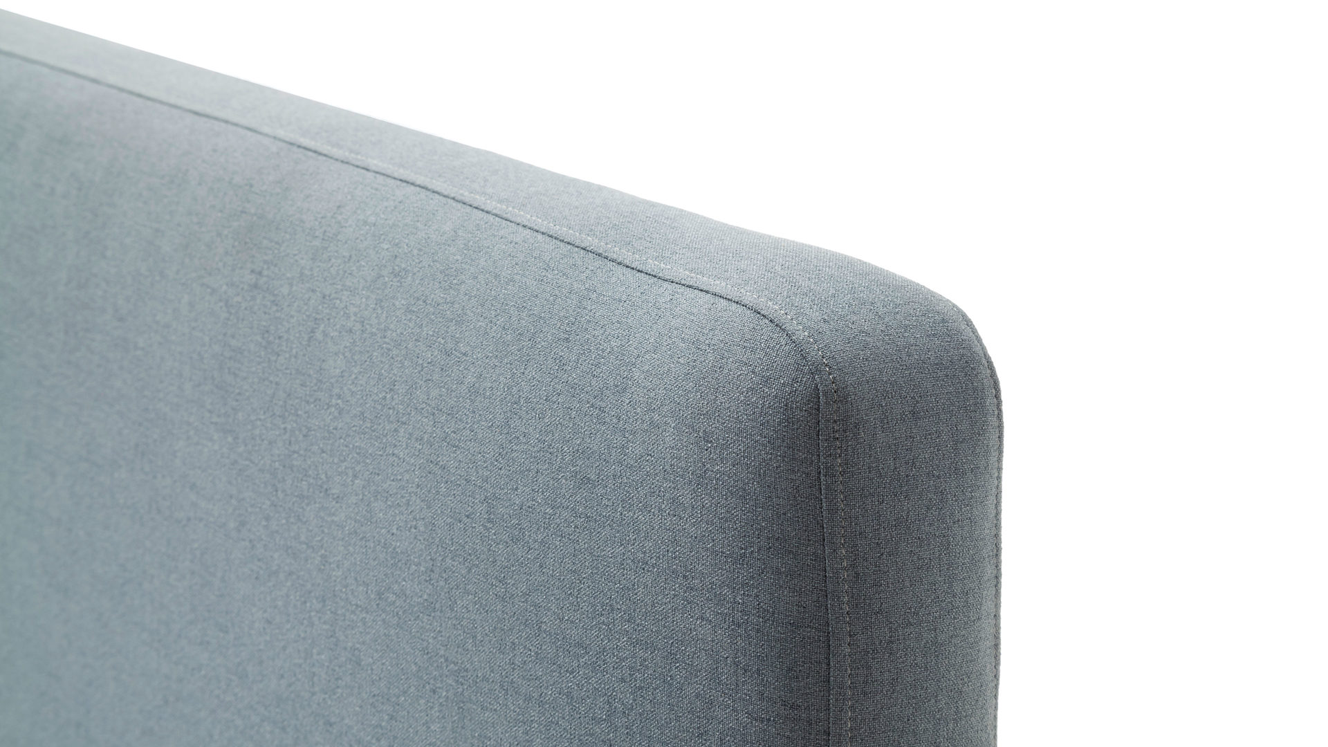 Das Polsterbettgestell Mattis begeistert durch die elegante Optik sowie die hervorragende Material- und Verarbeitungsqualität. Es kombiniert einen eisblauen Flachgewebe-Bezug mit eichefarbenen Holzfüßen. Sowohl die Bettseiten als auch das Polsterkopfteil sind glatt bezogen. Letzteres lädt Sie ein, sich anzulehnen, wenn Sie abends im Bett vor dem Schlafen noch fernsehen oder in einem Buch lesen.