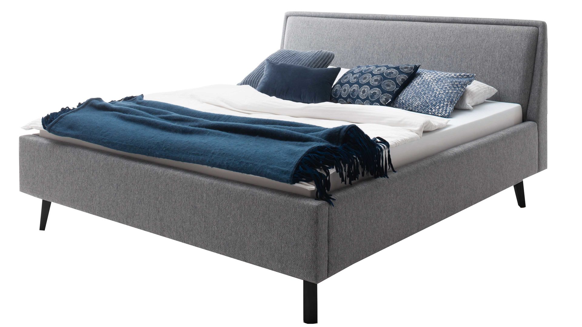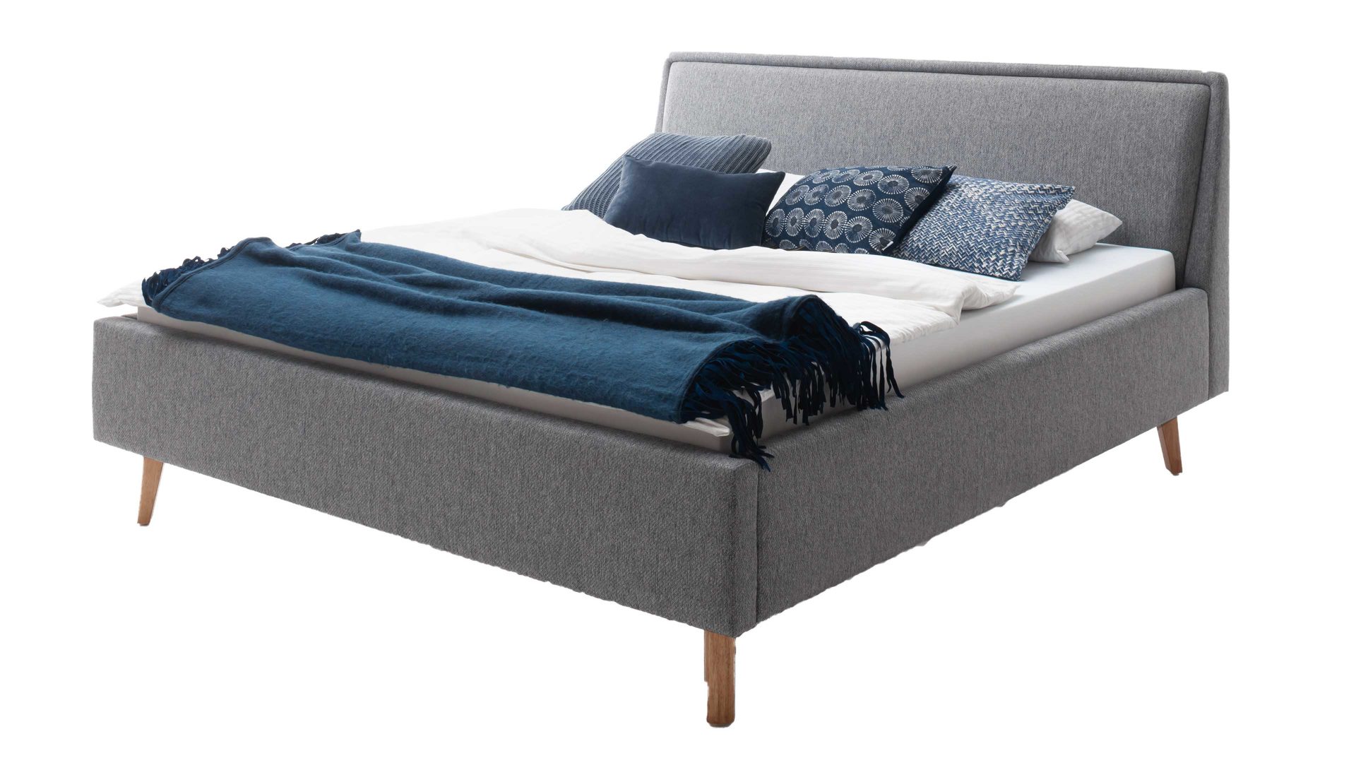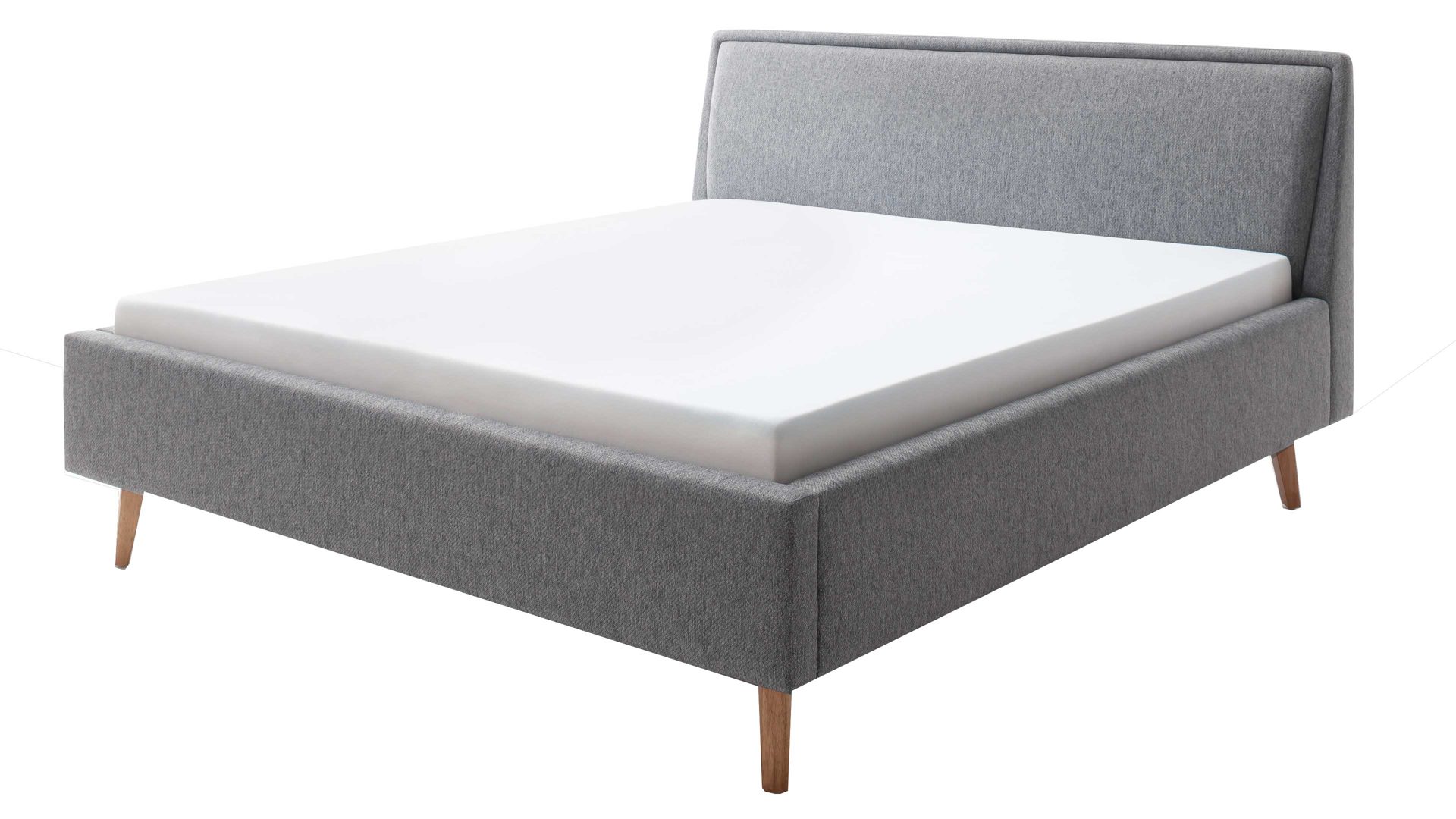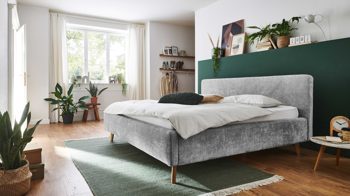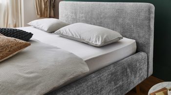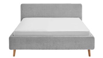 Das Polsterbettgestell Mattis begeistert durch die elegante Optik sowie die hervorragende Material- und Verarbeitungsqualität. Es kombiniert einen grauen Chenille-Bezug mit eichefarbenen Holzfüßen. Sowohl die Bettseiten als auch das Polsterkopfteil sind glatt bezogen. Letzteres lädt Sie ein, sich anzulehnen, wenn Sie abends im Bett vor dem Schlafen noch fernsehen oder in einem Buch lesen.