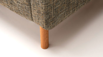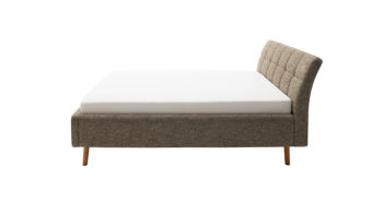 Pure Eleganz bringt das Polsterbettgestell Mila in Ihr Schlafzimmer. Die eichefarbenen Füße wirken filigran und verleihen diesem Modell eine luftig leichte Ausstrahlung. Ausgestattet ist das schicke Bett mit dem braunen Strukturbezug Building 801.