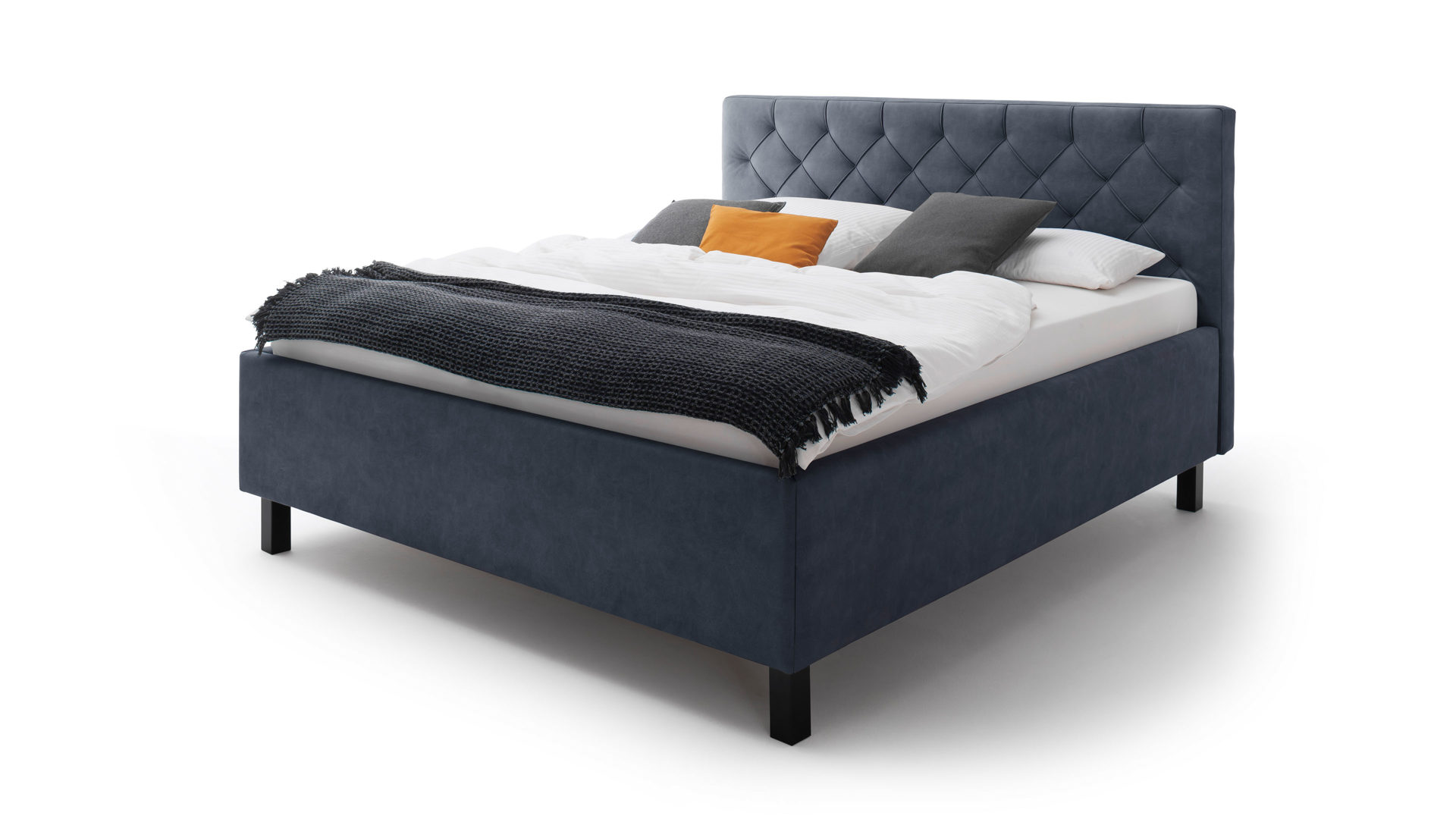 Das Polsterbettgestell San Remo bringt einen zeitlosen Chic mit. Sein taubenblauer Mikrofaserbezug Bulus 16 trifft auf Holzfüße in dezentem Schwarz. Abgerundet wird das edle Design von dem gesteppten Kopfteil mit Rautenmuster. Es entsteht ein stilvoller Look voll frischer Eleganz.