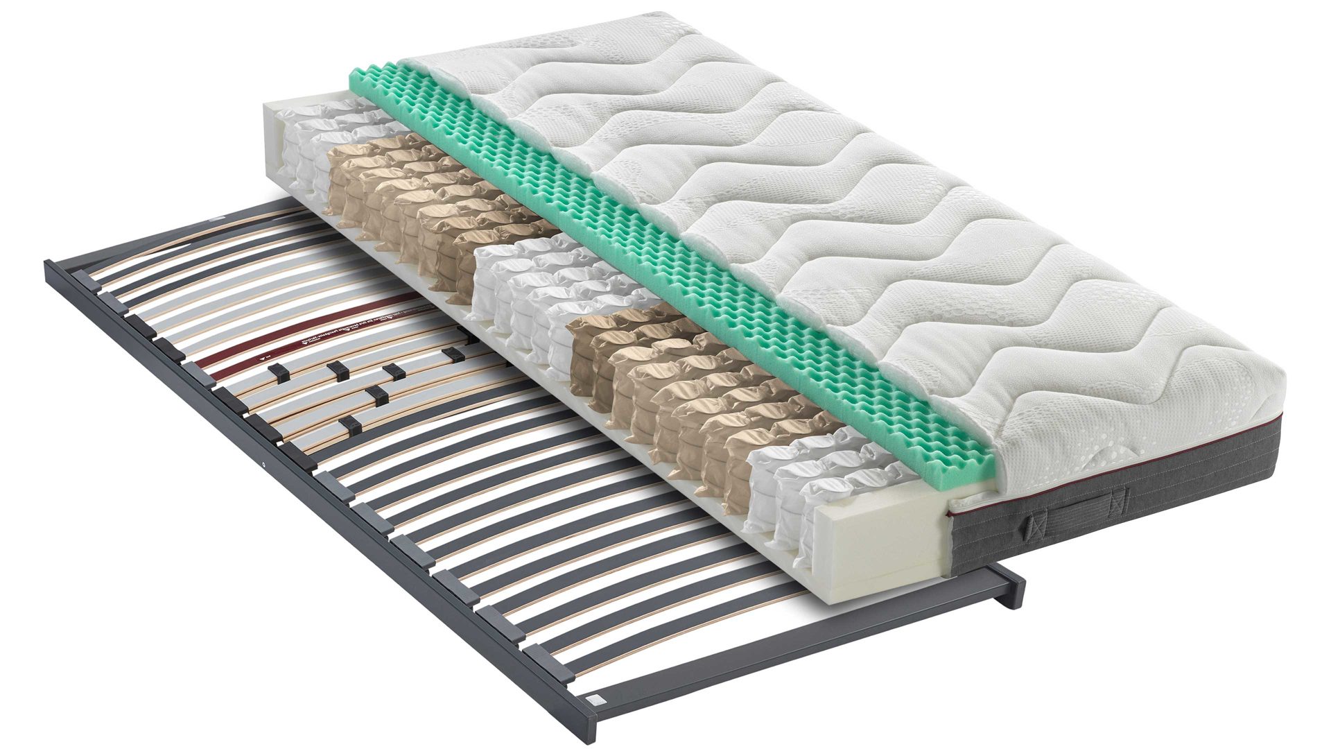 | Materialunterart: | Kunstfaser Klimafaser Taschenfederkern Kaltschaum Schichtholz Buche Kautschuk | |