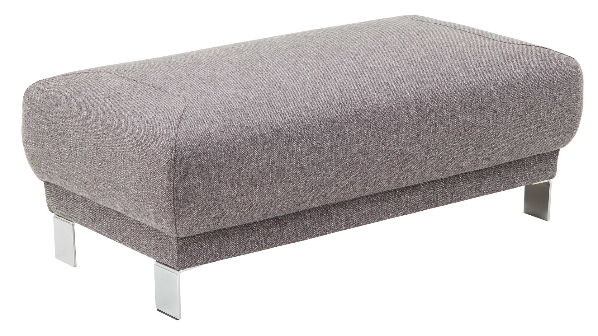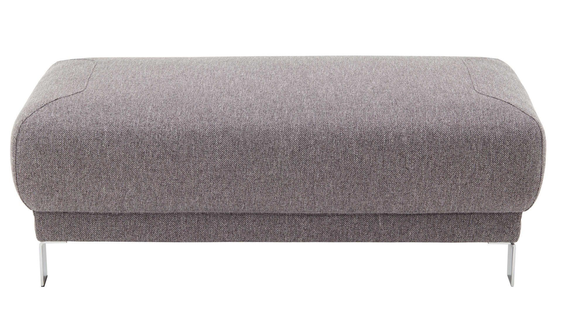 Der XXL-Hocker aus dem Polsterprogramm Tiamo Plus ist ein hochwertiges Möbelstück, das mit seinem eleganten Design und seiner erstklassigen Verarbeitung überzeugt. Mit einem silberfarbenen Stoffbezug und glänzenden Metallfüßen verleiht dieser Hocker jedem Raum einen Hauch von Luxus und Eleganz.