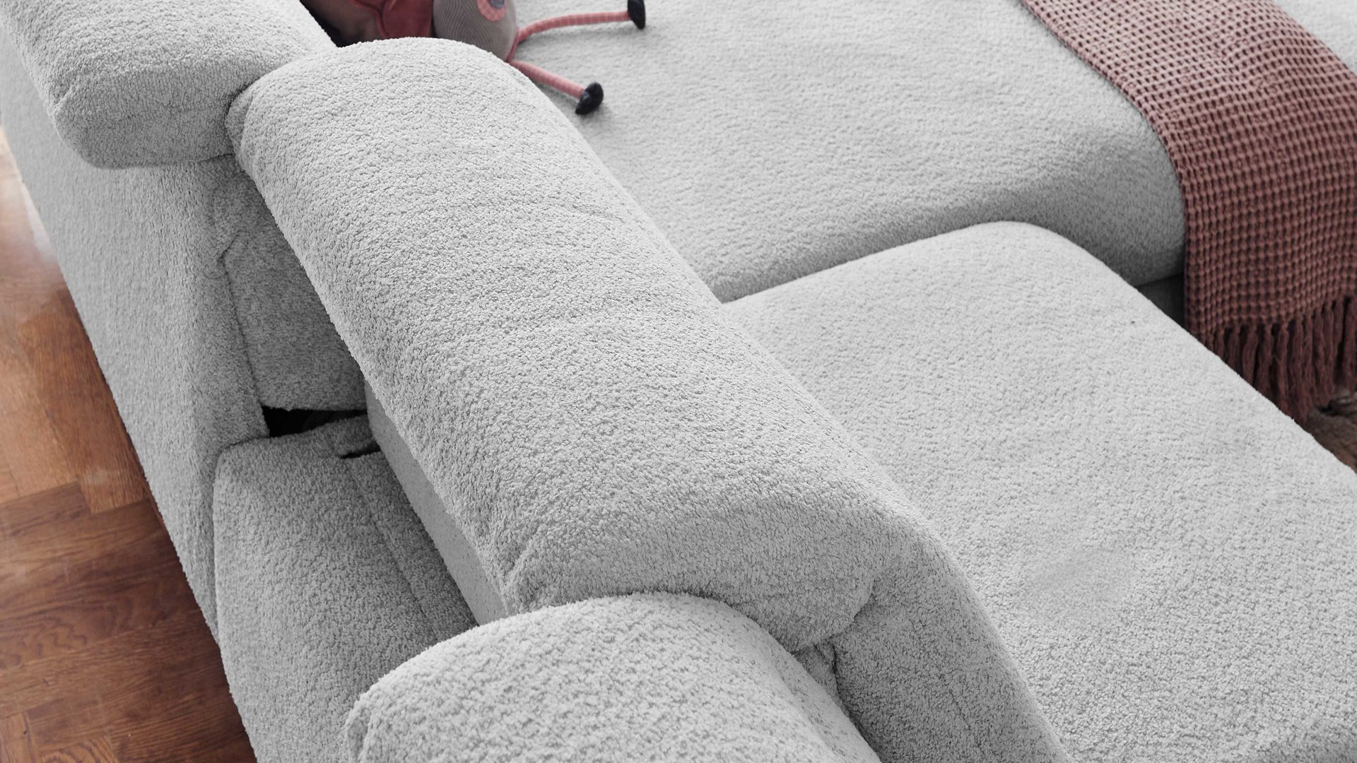 Indem Sie das Rückenkissen leicht anheben und vorziehen, können Sie die Sitztiefe manuell zwischen ca. 55 und 70 cm verstellen und damit stets an Ihre individuellen Bedürfnisse im jeweiligen Moment adaptieren.