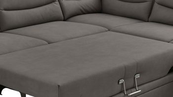 Bei der stoffbezogenen Liegefläche handelt es sich um einen stilvollen Mehrpreis für die Möbel mit Bettfunktion aus dem Modulmaster-Polsterprogramm MM-PP1133. Durch dieses Extra präsentiert sich die Liegefläche im Originalstoff des jeweiligen Sofas. Der graue Mikrofaserbezug mit genarbter Oberfläche strahlt moderne Eleganz aus.