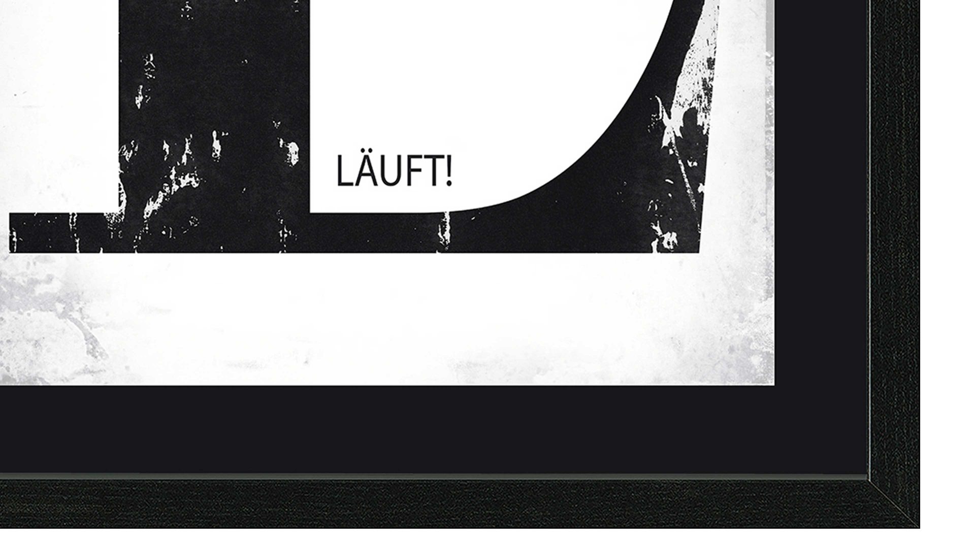 schwarzes Lettermotiv "Läuft" auf Weiß