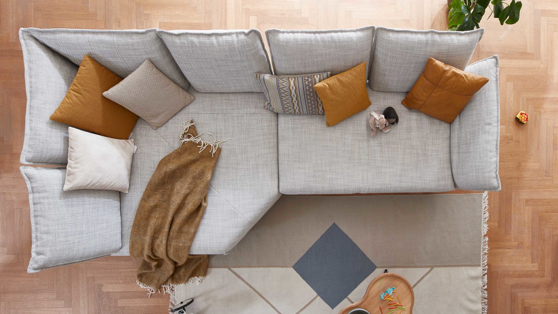 Zierkissen sowie weitere dargestellte Einrichtungsgegenstände sind separat gegen Mehrpreis bestellbar.