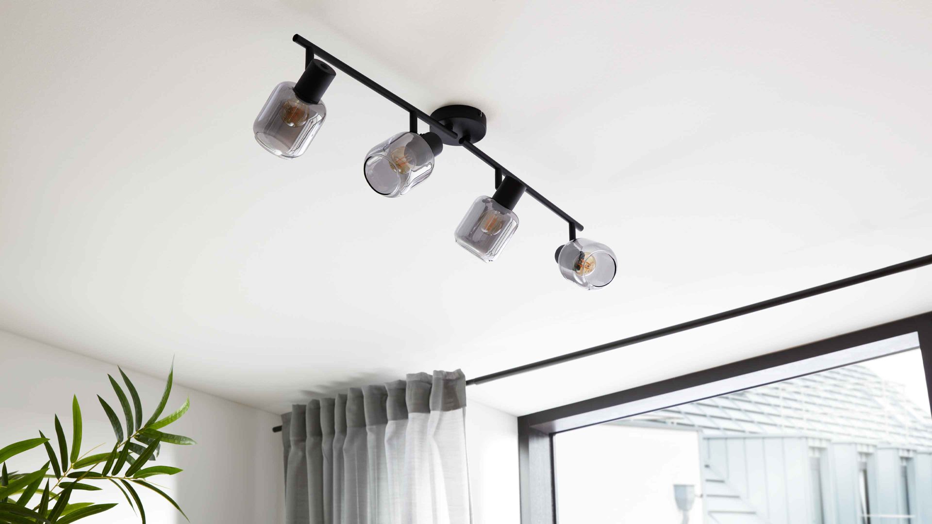 Die Leuchte ist ideal für offene Wohnbereiche, in denen du gezielte Lichtzonen schaffen möchtest. Über Esstisch oder Arbeitsbereich lassen sich die vier Spots flexibel ausrichten, um Licht genau dort zu platzieren, wo du es brauchst. In Kombination mit weiteren Leuchten der Serie entsteht ein stimmiges Gesamtbild im Industrial-Style, das deinem Zuhause modernen Charakter und Struktur verleiht.