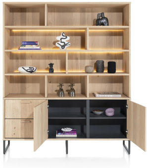 Das Buffet Castello von Henders & Hazel vereint frisches, modernes Design mit Funktionalität. Es besticht durch helles Eichenfurnier, das für eine freundliche Ausstrahlung sorgt. Dank des Soft-Close-Systems schließen Türen und Schubladen sanft und leise. Die integrierte LED-Beleuchtung setzt stilvolle Akzente und sorgt für eine besondere Atmosphäre.