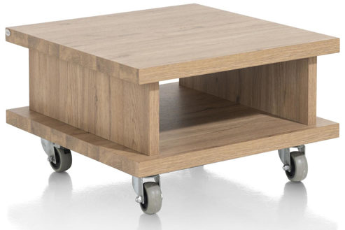 Dank der praktischen Rollen ist der Delmonte mobil und flexibel einsetzbar – ideal als Beistelltisch neben dem Sofa oder als freistehendes Element. Unter der stilvollen Tischplatte befindet sich ein offenes Fach, das zusätzlichen Stauraum bietet. Die Konstruktion aus Primo Laminato (HPL) in der Farbe Eiche Natur ist leicht, robust und pflegeleicht. Dieses Material sieht aus wie Holz, ist jedoch kratzfest und perfekt für den täglichen Gebrauch.