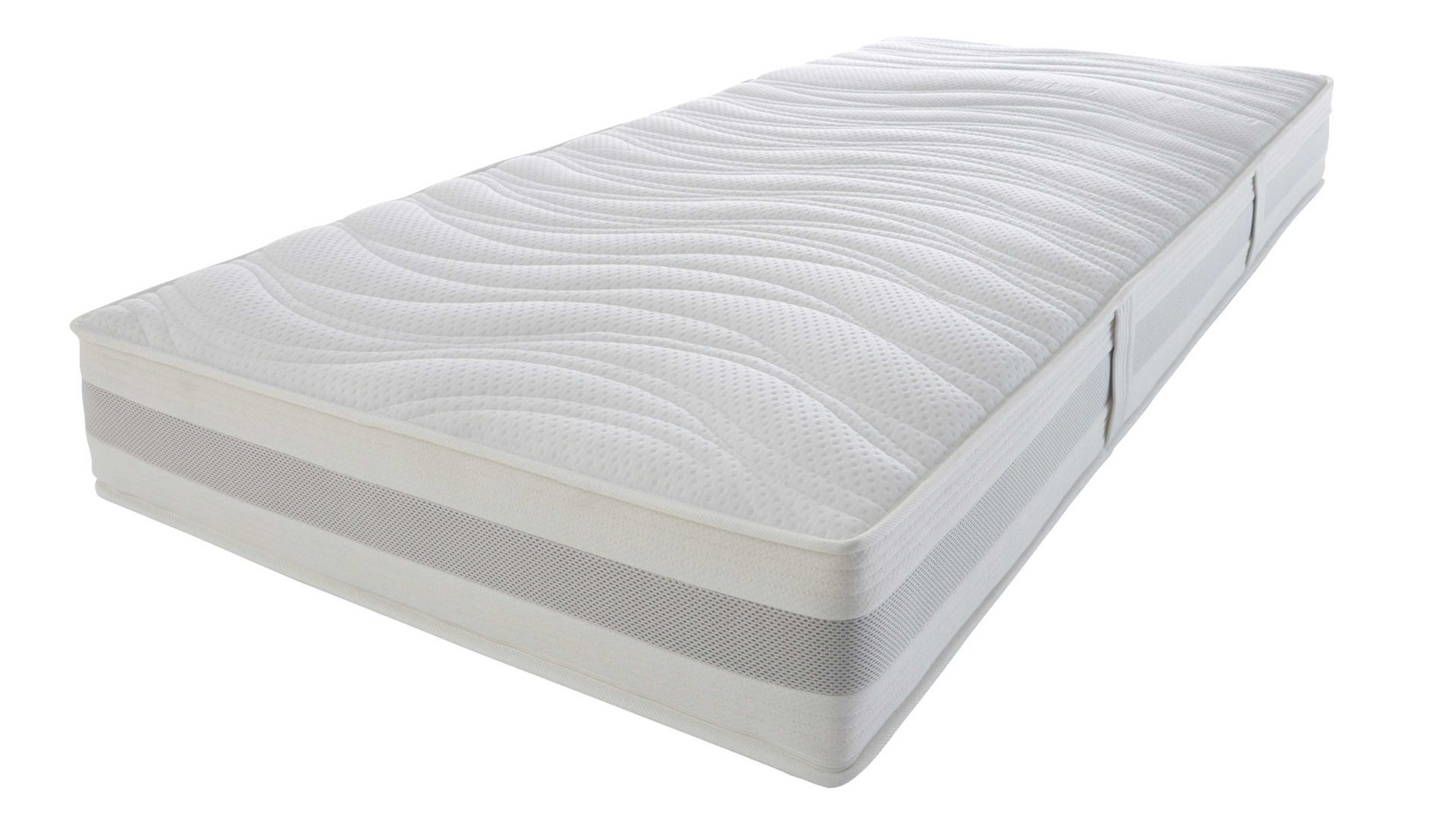 Der 7-Zonen-AQUAPUR®-Taschenfederkern mit rund 480 einzeln verpackten Federn (bezogen auf ca. 90 x 200 cm) sorgt für eine präzise Körperanpassung und eine gleichmäßige Druckverteilung. Ergänzt wird das System durch eine druckentlastende Viskoplatte im Noppenprofil, die sich ideal an deine Körperkontur anschmiegt. So wird die Wirbelsäule ergonomisch korrekt gelagert, während Schultern, Becken und Lenden gezielt entlastet werden.