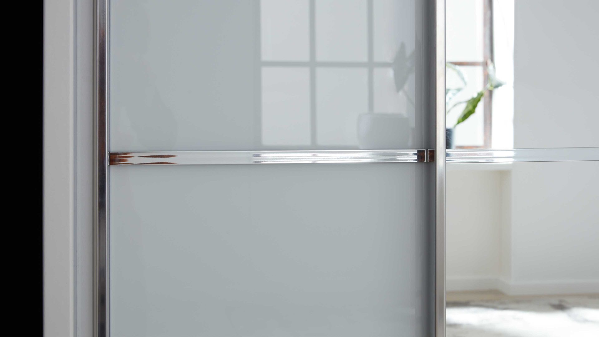 Der Schwebetürenschrank aus der Interliving Kleiderschrank Serie 1205 verbindet elegante Gestaltung mit cleverer Stauraumorganisation. Mit Maßen von ca. 300 x 217 x 67 cm (B/LxHxT) bietet er dir großzügigen Platz für Kleidung und Accessoires. Das moderne Design mit weißen Glasfronten, einer integrierten Kristallspiegeltür und edlen chromfarbenen Griff- und Zierleisten wirkt puristisch und stilvoll zugleich. Produziert in Deutschland und mit 5 Jahren Herstellergarantie ausgestattet, steht dieser Kleiderschrank für Qualität, die dich lange begleitet.