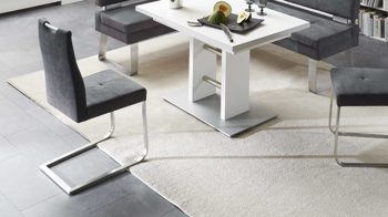 Auch optisch macht der Freischwinger einiges her. Als stabilisierende Basis fungiert ein klassisches Edelstahlgestell. Es harmoniert bestens mit dem soften Mikrofaserbezug im modernen Farbton Anthrazit. Stilsicher abgerundet wird der Combinessa Polsterstuhl Genesis durch die akzentuierende Steppung der Sitzfläche.