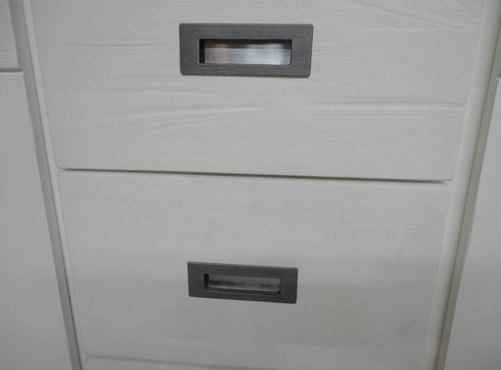Die Deckplatte ist in der Farbe pampas grey lackiert und alle weiteren Elemente erscheinen in der Farbe off white.