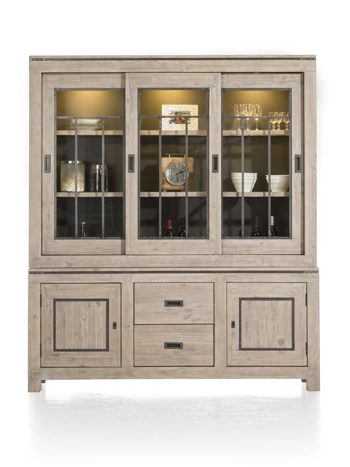Aufgrund von 3 Schiebetüren aus Glas, 2 Türen und 2 Schubladen bietet der Buffetschrank, mit der Artikelnummer 30556TBG, einen enormen Stauraum im Inneren. Somit stellt das Verstauen von Utensilien jeglicher Art keinerlei Probleme dar.