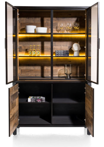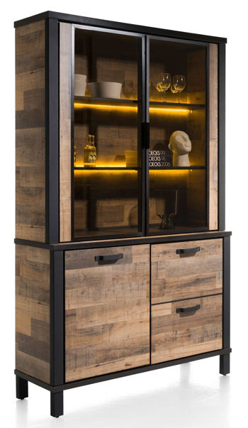 Das Sardinie Buffet 42454DRI des Herstellers Habufa bietet Ihnen mit seinem modernen Design vielseitige Verwendungsmöglichkeiten und Ihrem Wohn- oder Esszimmer. Das imposante Modell wird der neue Blickfang in Ihrem zu Hause. Mit einer Breite von circa 130 cm sowie einer stattlichen Höhe von ungefähr 210 cm fällt dieses Möbelstück beim Betreten des Raumes sofort ins Auge. Sie erhalten das Buffet in der Ausführung Laminato driftwood Melamin mit Absetzung in grau. Die Fronten sowie Seiten sind in Melamin (Altholz-Nachbildung) gehalten und sorgen für eine angenehme Atmosphäre. Hinter den zwei Türen mit Glasausschnitt können Sie Ihre besonderen Erinnerungsstücke sowie andere Deko-Artikel mit der integrierten Beleuchtung perfekt in Szene setzen. Zusätzlichen verdeckten Stauraum finden Sie hinter den beiden Türen. Hier können Sie Tischdecken oder Ihre Spielesammlung staubgeschützt deponieren. Das Möbelstück wird montiert geliefert und besitzt eine hohe Sperrigkeit, bitte sorgen Sie dafür, dass es zu seinem Verwendungsort getragen werden kann.