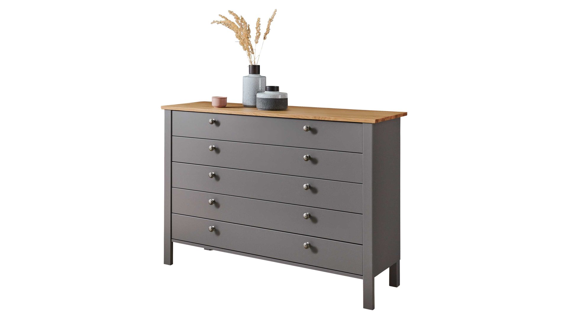 manhattengrauer Lack & Wildeiche - fünf Schubladen, Breite ca. 134 cm
