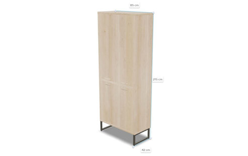 Seine Holzgriffe fügen sich harmonisch ins Gesamtbild ein, während die stabilen Metallbeine einen modernen Akzent setzen. In verschiedenen Ausführungen erhältlich, passt er sich flexibel an unterschiedliche Wohnräume an. Besonders praktisch: Stellt man zwei Schränke nebeneinander, entsteht eine großzügige Schrankwand, die viel Stauraum bietet.