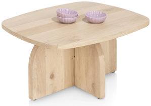 Die organische Tischplatte und die abgerundeten Beine in Form eines Kreuzgestells verleihen dem Tisch eine elegante und stabile Ausstrahlung. Ganz aus Holz gefertigt, ist er nicht nur ästhetisch, sondern auch funktional und vielseitig einsetzbar.