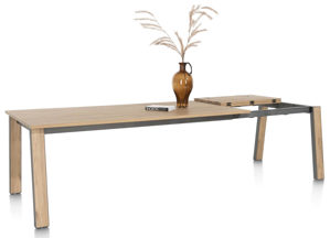 Der Ausziehtisch Delmonte von Henders & Hazel vereint klassisches Design mit modernem Komfort. Sein ansprechendes Aussehen passt ideal zum Landhausstil und schafft eine einladende Atmosphäre in jedem Essbereich.