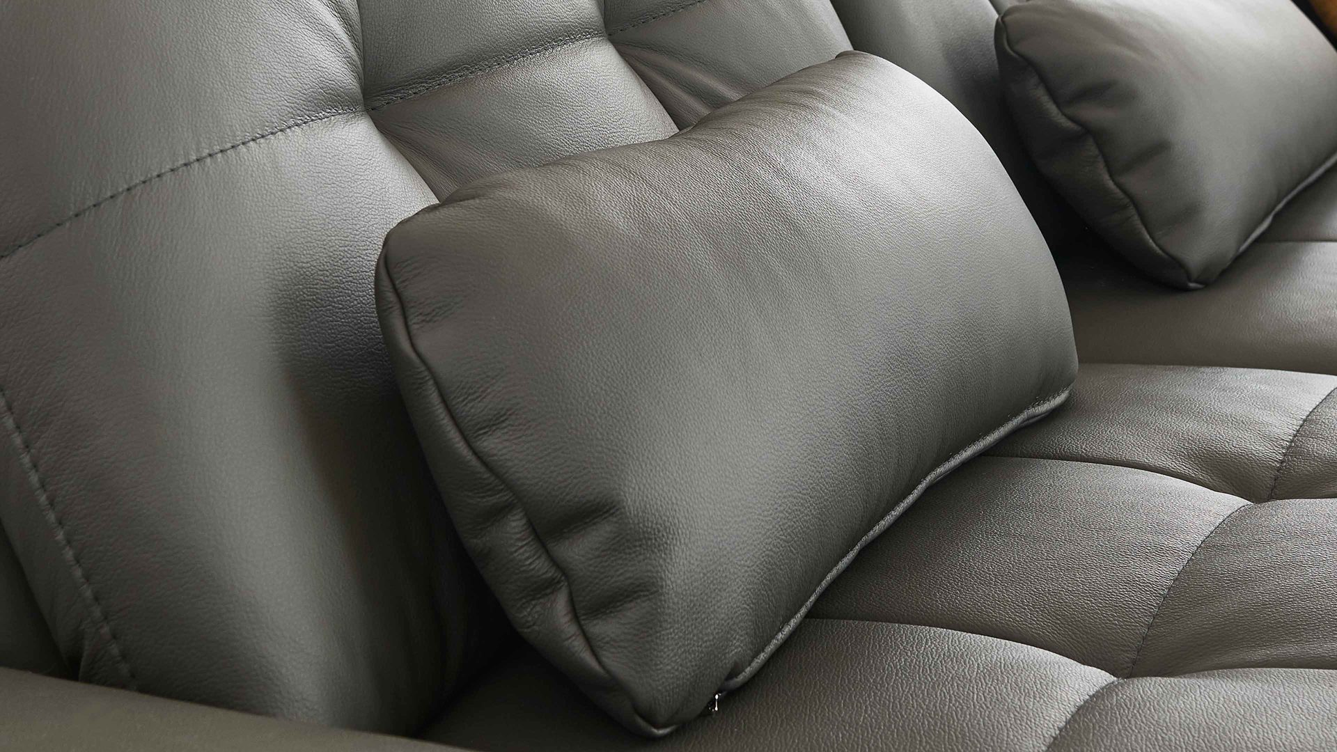 Die lederbezogene Liegefläche ist ein Mehrpreis für die Möbel mit Bettfunktion aus dem Modulmaster-Polsterprogramm MM-PN1078. Durch dieses Extra präsentiert sich die Liegefläche im Originalbezug des jeweiligen Sofas. Das grau pigmentierte Glattleder präsentiert sich modern und elegant.