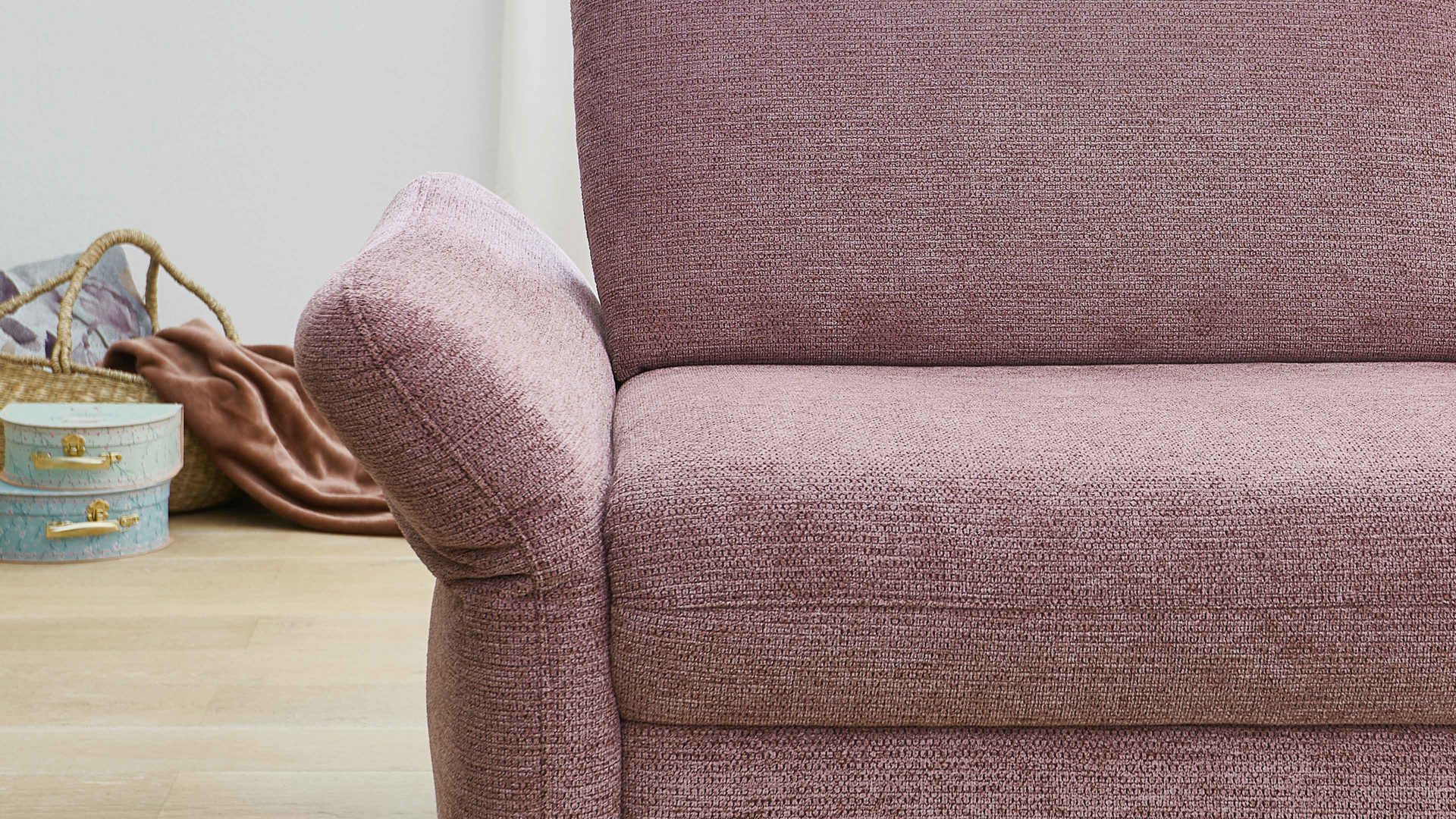 Zu den Highlights des Polsterprogramms gehören die grundsätzlich im Originalstoff bezogenen Rückseiten, die bei allen Elementen enthaltene Kopfpolsterverstellung sowie die für Staubsaugerroboter ideale Bodenfreiheit. Die Serie ist Made in Europe und mit dem Goldenen M ausgezeichnet.