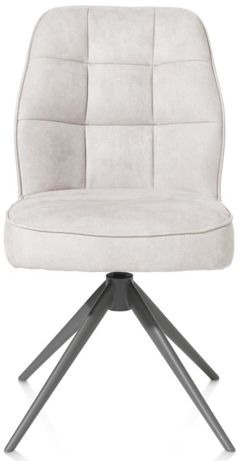 Der Stuhl Bell von Henders & Hazel vereint stilvolle Optik und hohen Sitzkomfort dank seines Taschenfederkerns. Die rautenförmigen Ziernähte verleihen ihm eine elegante Note, während das drehbare, graphitfarbene Gestell für Flexibilität sorgt. Vollständig mit dem hochwertigen Mikrofaserstoff Calabria bezogen, garantiert der Esszimmerstuhl eine angenehme Haptik. In den Farben Kiesel, Moosgrün und Olive erhältlich, ist er zudem auch als Armlehnenstuhl verfügbar – eine stilvolle Bereicherung für jedes Wohn- oder Esszimmer.
