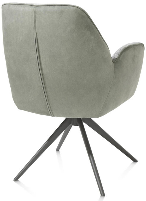 Der Armlehnenstuhl Bell von Henders & Hazel kombiniert elegante Optik mit hohem Komfort dank Taschenfederkern. Die rautenförmigen Ziernähte verleihen ihm eine edle Note, während das drehbare, graphitfarbene Gestell Flexibilität bietet. Die Stoffkombination aus Mikrofaserstoff Calabria auf der Außenseite und Stoff Vada innen sorgt für eine angenehme Haptik. Erhältlich in den Farben Kiesel, Moosgrün und Olive ist der Stuhl eine stilvolle Ergänzung für jedes Wohn- oder Esszimmer.