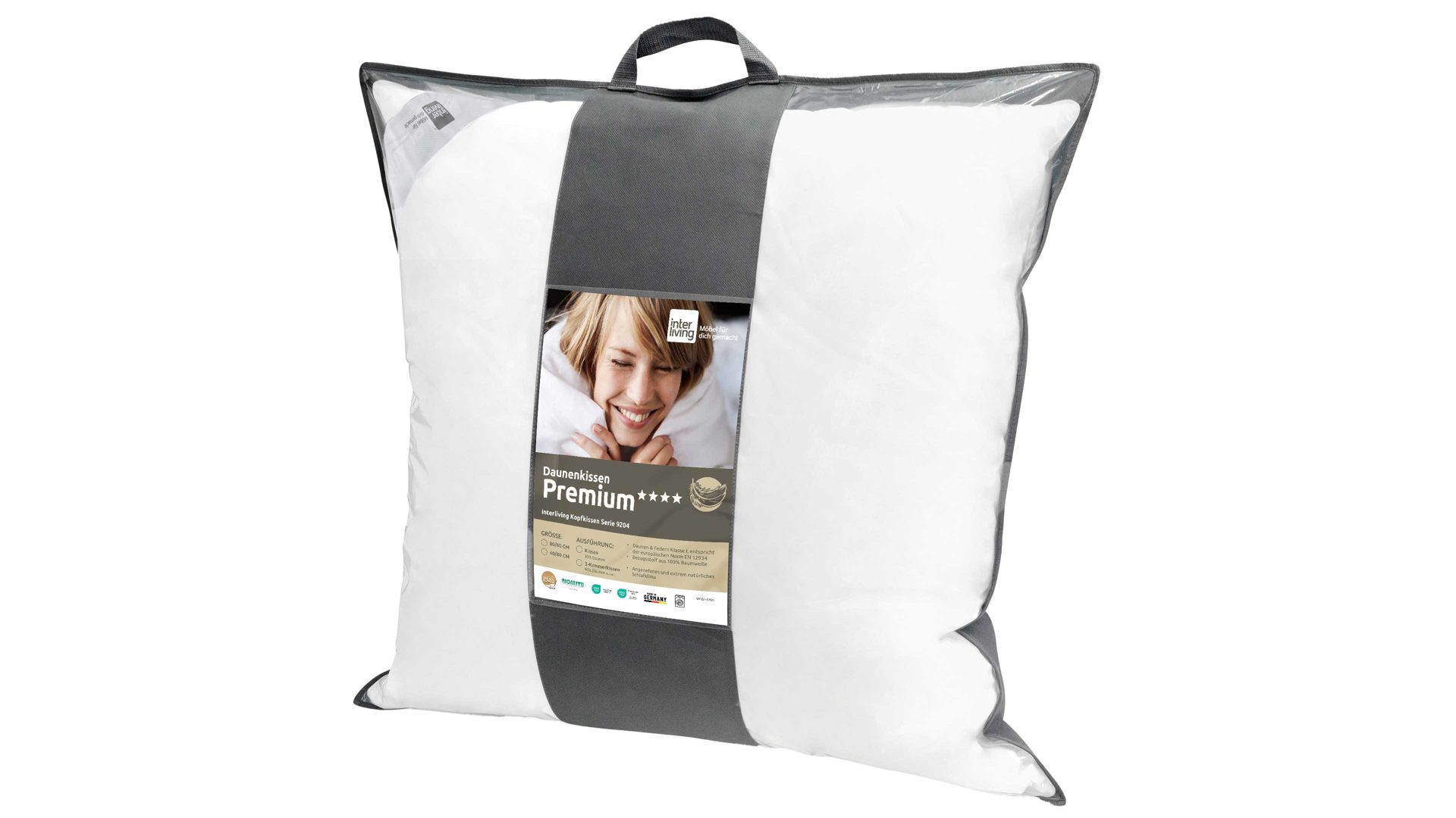 Das Interliving Kopfkissen Serie 9204 ist bis 60 °C waschbar und lässt sich im Trockner schonend trocknen. Dank Nomite-Zeichen und OEKO-TEX® Standard 100 ist es auch für Hausstauballergiker bestens geeignet und gesundheitlich unbedenklich. Besonders praktisch: Die atmungsaktive Tragetasche ist inklusive – perfekt für Aufbewahrung oder Reisen.