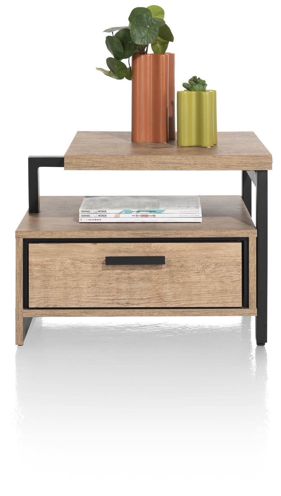 Mit einer Schublade und einer Nische bietet der Tisch ausreichend Stauraum für Ihre persönlichen Gegenstände oder dekorative Akzente. Sein modernes Design macht ihn zum perfekten Begleiter für Ihr Wohnzimmer, Schlafzimmer oder Büro. Egal, ob Sie ihn als Nachttisch neben Ihrem Bett verwenden oder als stilvolle Ablage neben Ihrer Couch - der Beistelltisch 46498 Pavarotti vereint Funktionalität und Stil auf harmonische Weise.