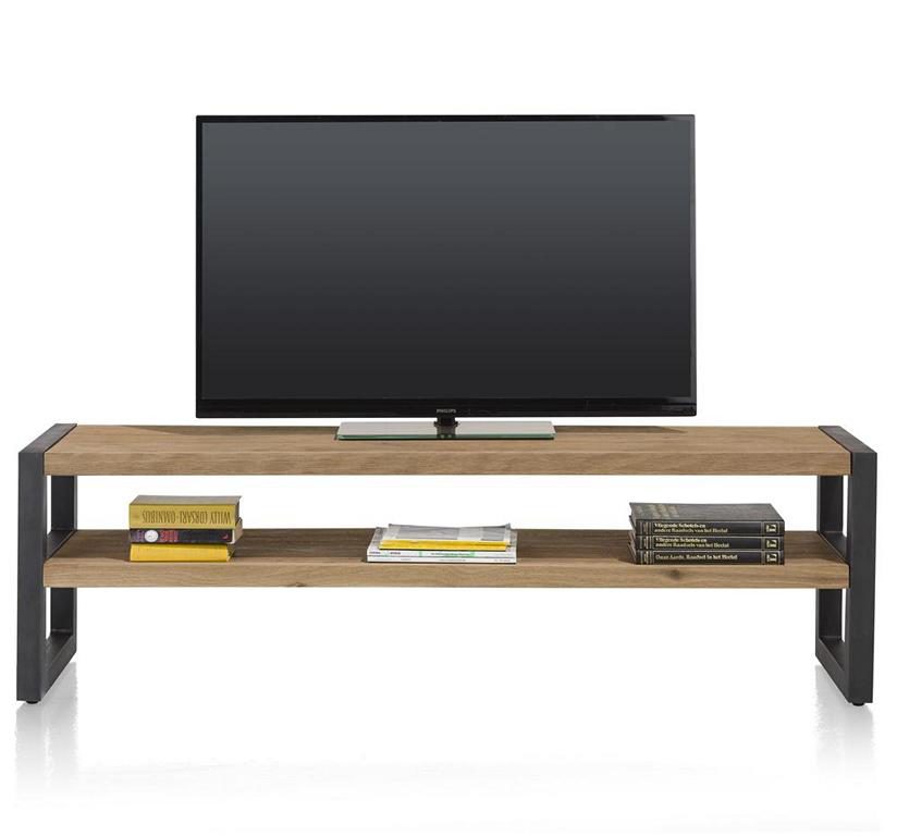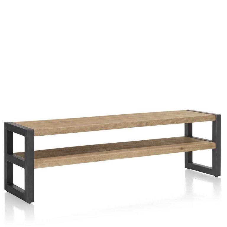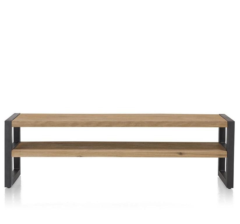 Das TV Rack Brooklyn 37139RWB aus dem Hause Habufa besteht aus massiven Eichenholz, welches weitgehend natürlich belassen ist. Astlöcher, Wachstumsrisse und Unebenheiten im Holz sind gewollt und tragen der Charakterbildung bei. Manche Stellen werden mit schwarzem Spachtel gefüllt, der optimal mit dem Metall harmoniert. Mit einer Breite von 170 cm finden auch breitere Fernseher Platz. In der Unteren Nische können Reciever, Bluerayplayer etc. deponiert werden. Das Gestell aus Metall verleiht dem TV Rack einen handwerklichen Look.