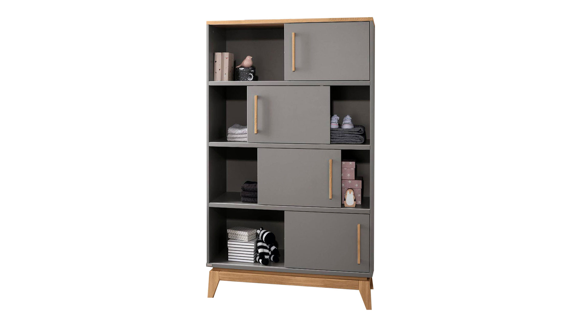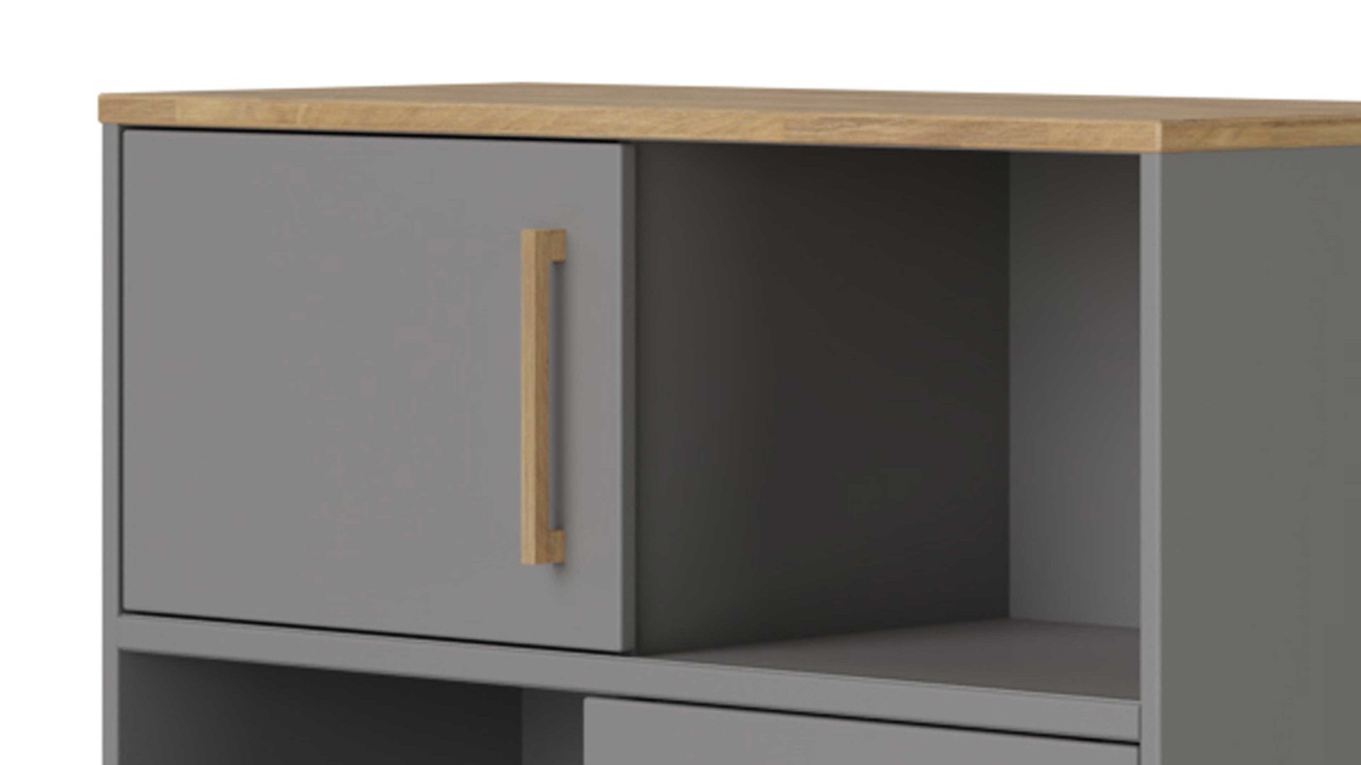 Das hochwertige PAIDI Stauraumelement Sten kombiniert massive Eiche mit schiefergrauen Melaminoberflächen. Letztere zeichnen sich durch ihre Lichtechtheit sowie die besonders ausgeprägte Kratz- und Stoßfestigkeit aus. Überdies sind sie sehr pflegeleicht. Die massive Eiche begeistert mit ihrer extremen Robustheit und Stabilität. Zudem strahlt sie warme Natürlichkeit aus. Der Holzton harmoniert wunderbar mit dem Schiefergrau. Zusammen sorgen die Nuancen für eine moderne und elegante Optik.