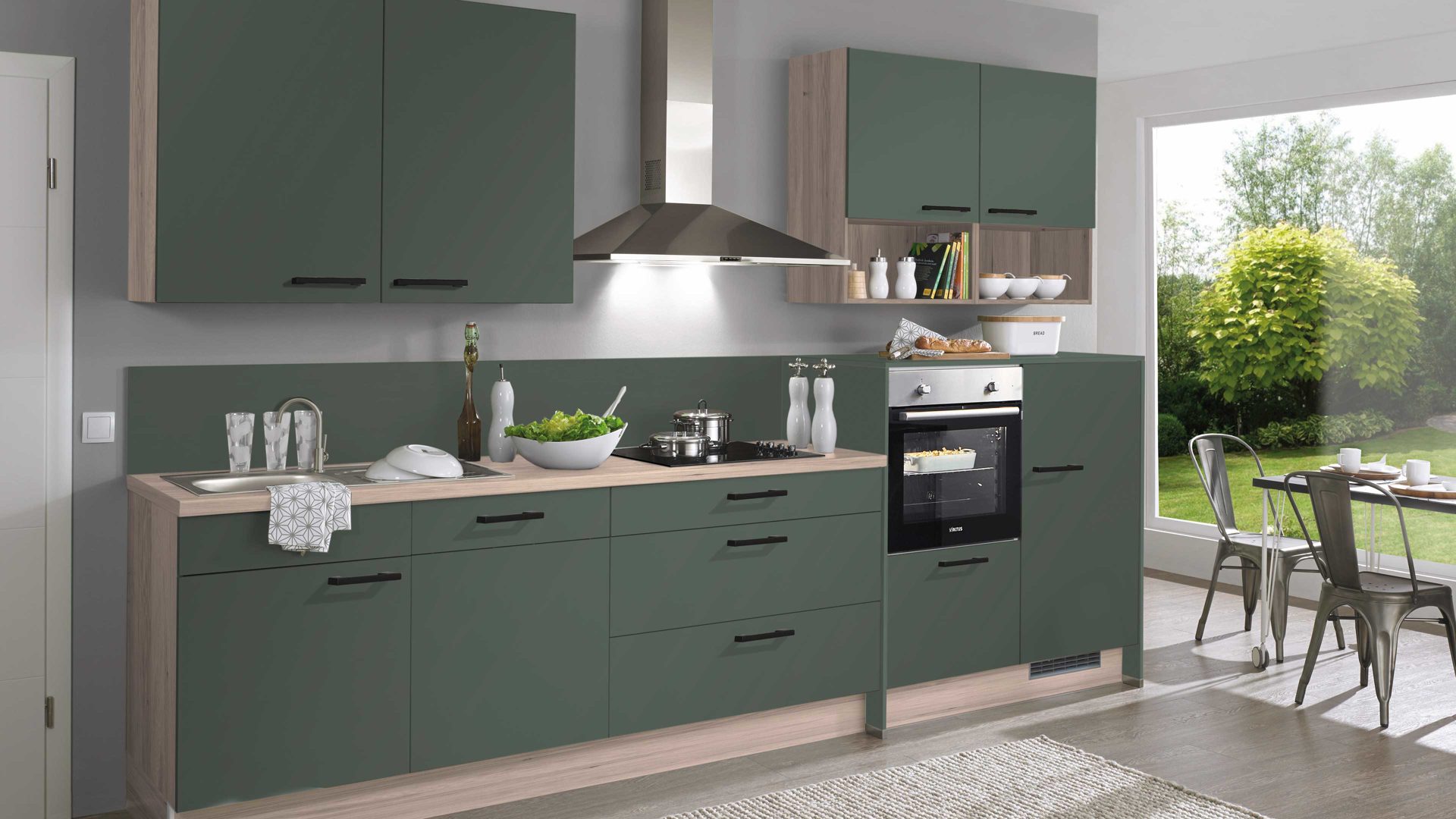Mineralgrün & Eiche Sierra - Länge ca. 390 cm