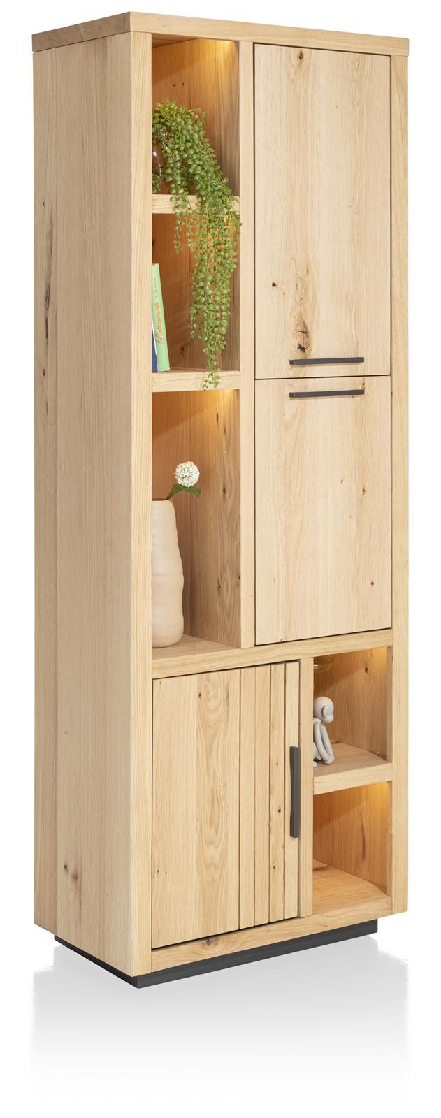Dank der natürlichen Eichenfarbe fügt sich dieser Schrank nahtlos in jede Wohnraumgestaltung ein und verleiht Ihrem Zuhause eine warme und einladende Atmosphäre. Die integrierte LED-Beleuchtung setzt Ihre Lieblingsstücke gekonnt in Szene und schafft eine stimmungsvolle Atmosphäre.