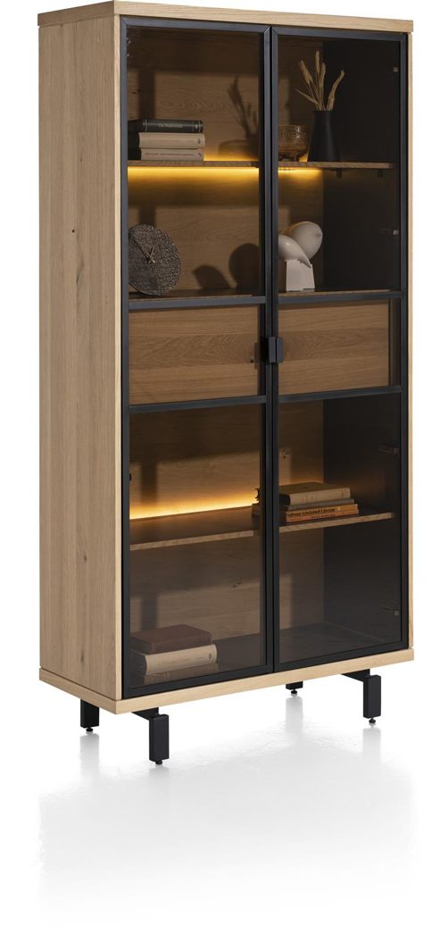 Die Vitrine Ridgefield Nr. 46348 von Henders & Hazel vereint elegantes Design mit funktionaler Raffinesse und bringt stilvolle Akzente in jeden Wohnraum. Gefertigt aus hochwertigem, handgebürstetem Eichenfurnier, strahlt dieses Möbelstück Wärme und Natürlichkeit aus, während die sorgfältig ausgewählte Farbe Natur die Schönheit des Holzes hervorhebt. Die modernen Metallfüße verleihen der Vitrine eine schwebende Leichtigkeit und garantieren gleichzeitig Stabilität und Langlebigkeit.
