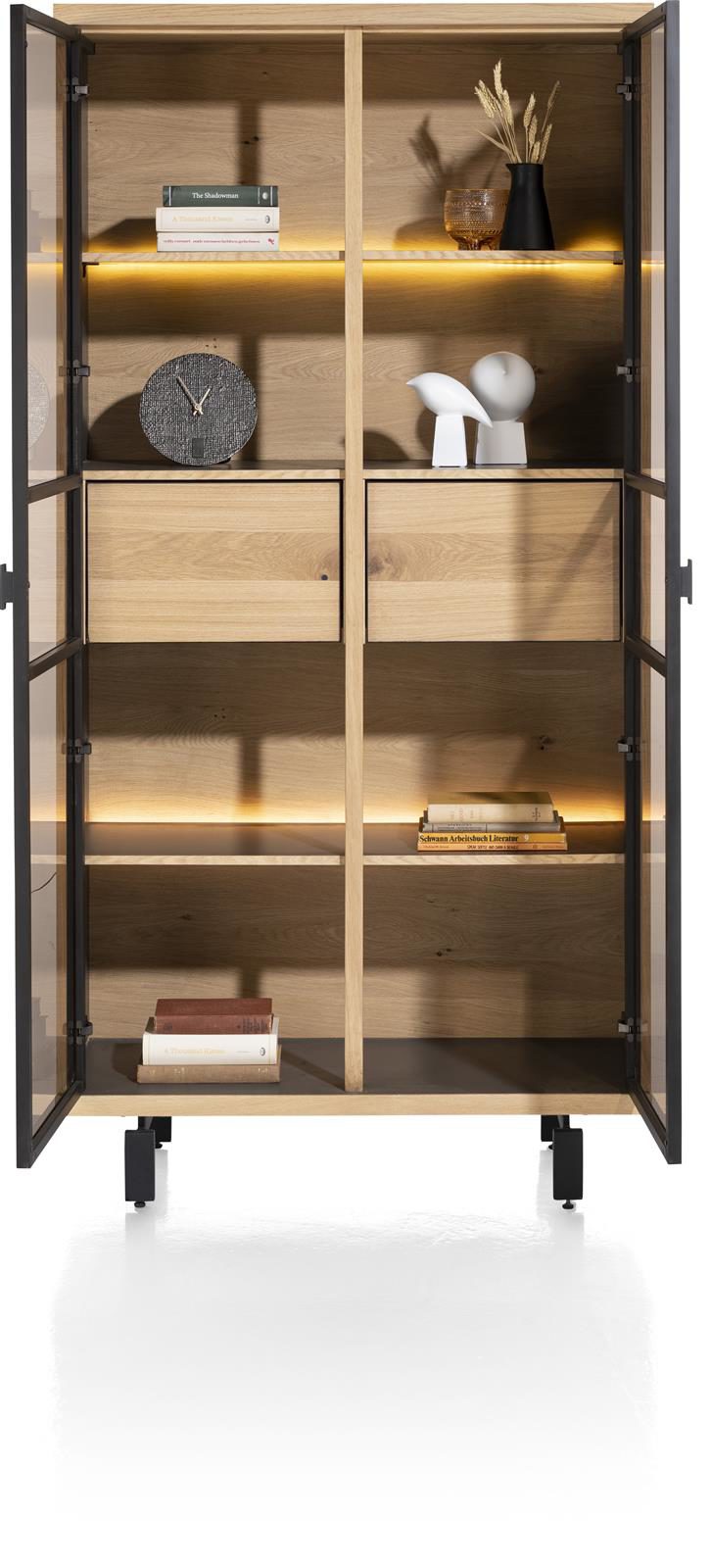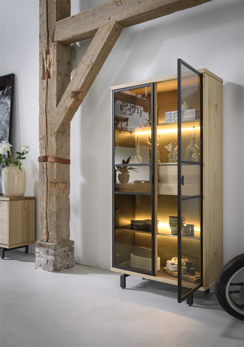 Ein weiteres Highlight der Vitrine Ridgefield ist die integrierte LED-Beleuchtung in den Nischen, die nicht nur Ihre ausgestellten Gegenstände effektvoll in Szene setzt, sondern auch eine gemütliche Atmosphäre im Raum schafft. Die Beleuchtung unterstreicht die hochwertige Verarbeitung und das durchdachte Design der Vitrine.