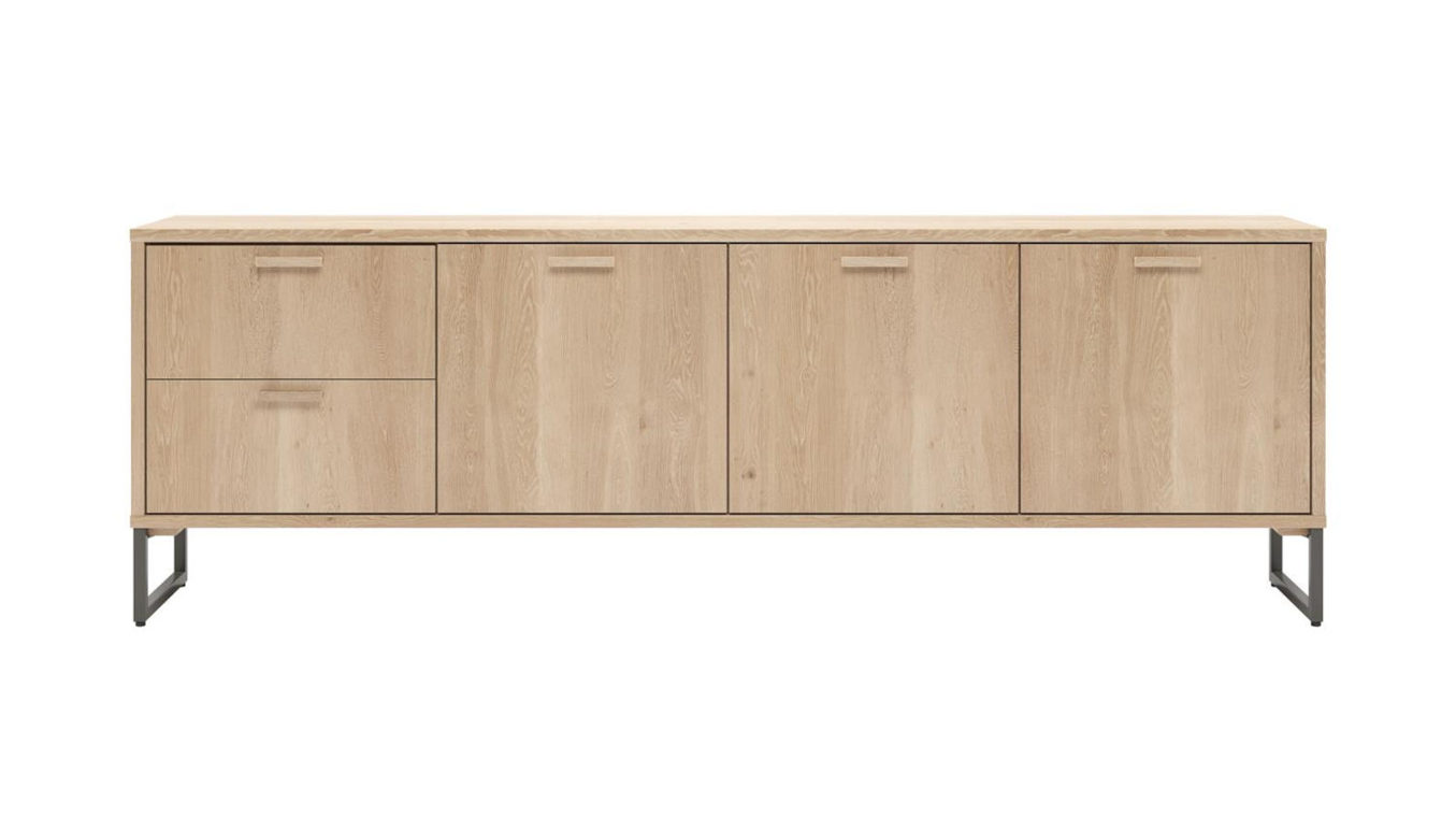 Das Sideboard Castello 51987NAT von Henders & Hazel vereint modernes Design mit natürlicher Eleganz. Das helle Eichenfurnier in der Farbe Sand Oak, lackiert in einem sanften, natürlichen Ton, verleiht dem Möbelstück eine frische Ausstrahlung, die sich ideal in verschiedene Wohnstile einfügt. Darüber hinaus bietet das Sideboard viel Stauraum, perfekt für Geschirr, Gläser oder Dekorationsartikel.