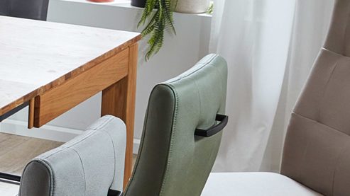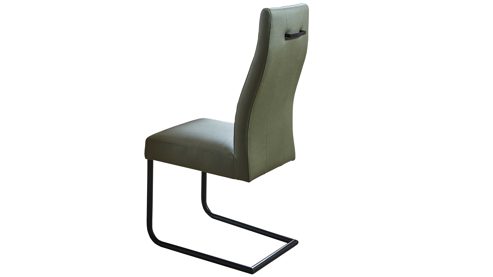 oöivgrüner Stoffbezug in Lederoptik, kombiniert mit mattschwarz lackiertem Metall