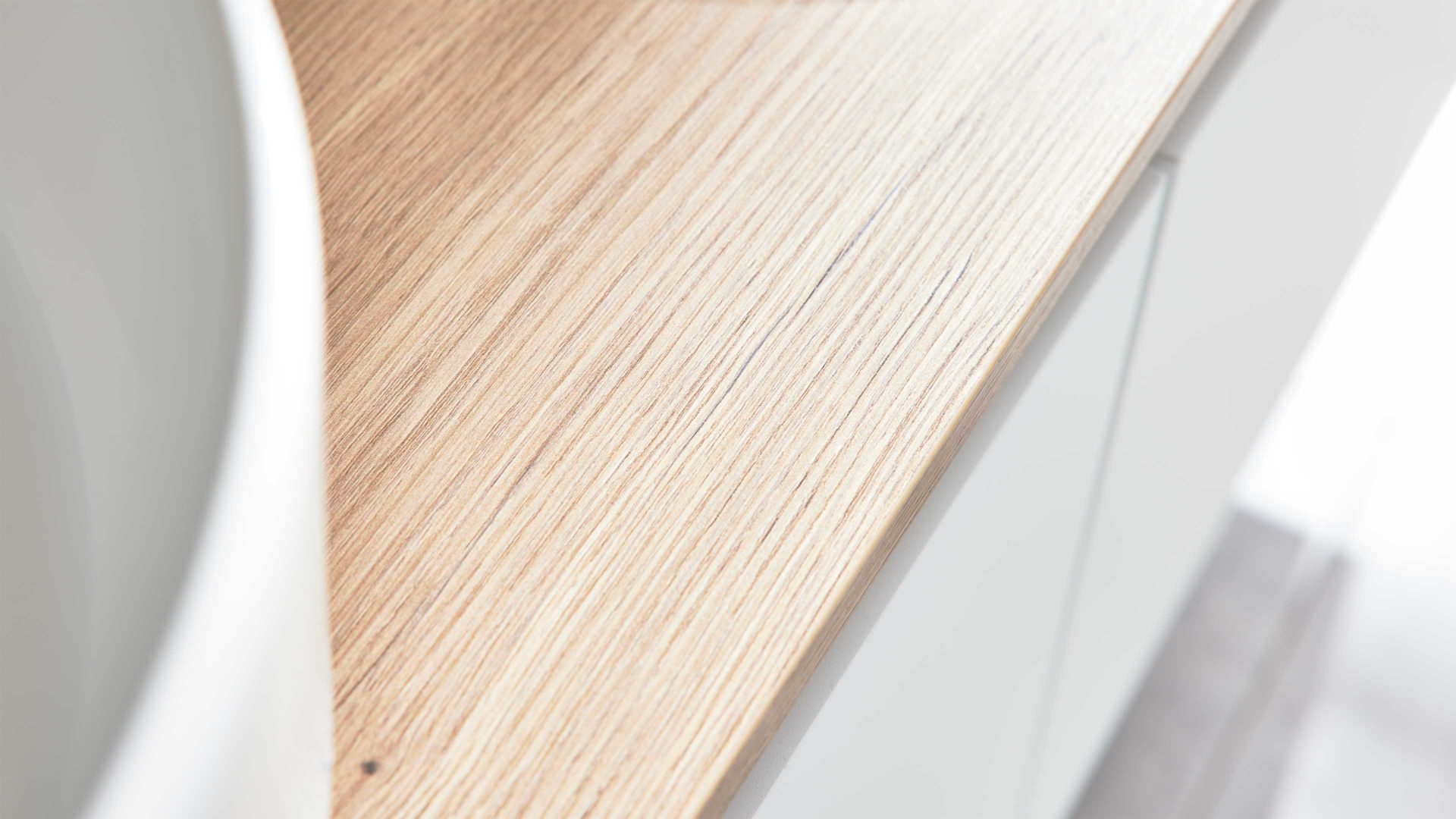 Ein holzfarbener Abdeckboden (Typ 16849) mit zwei präzisen Ausschnitten für die Waschbecken ist bereits enthalten. Maße: ca. 160 x 1,6 x 49 cm (B/LxHxT). So entsteht ein durchgängiges, modernes Gesamtbild.