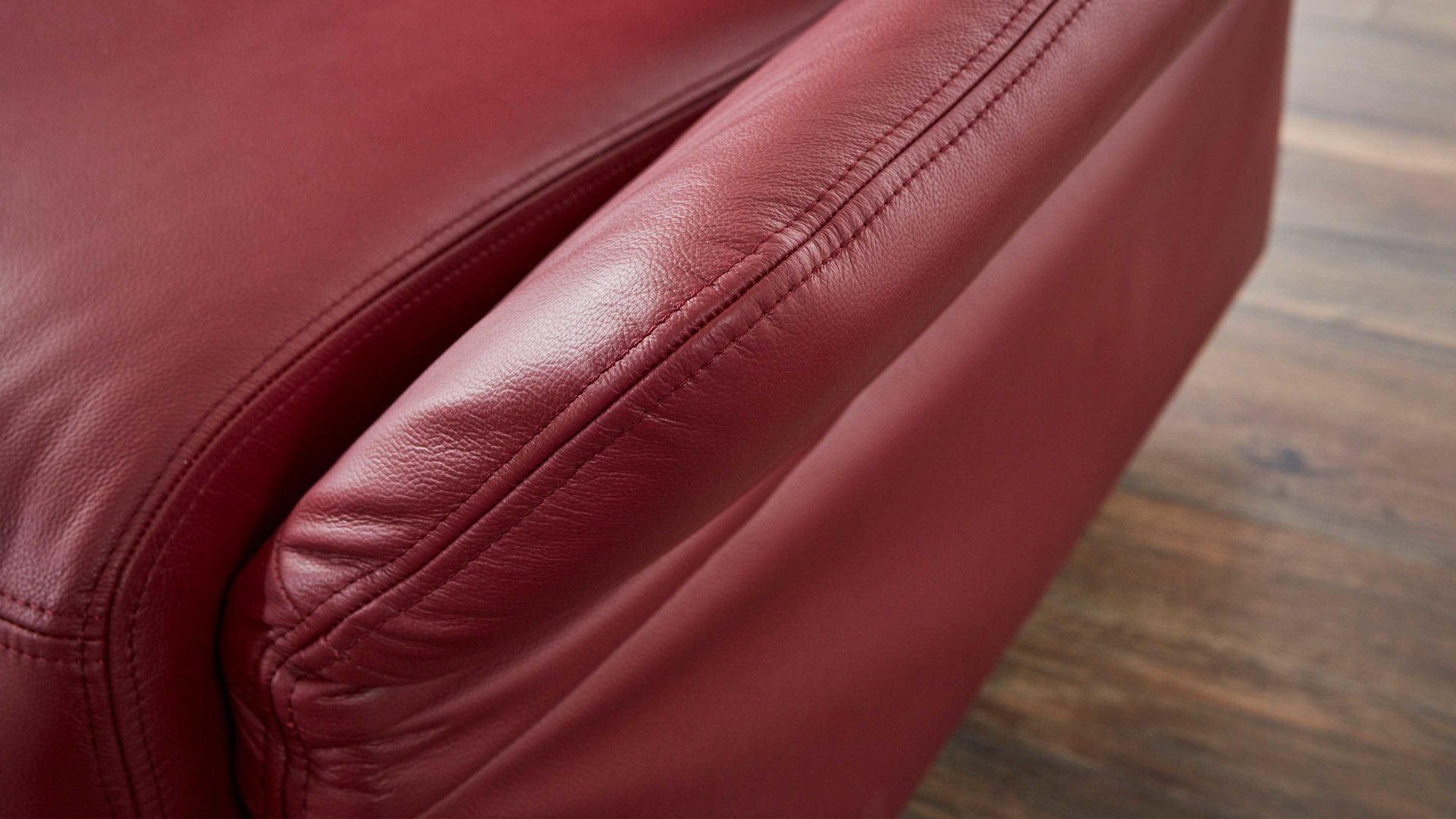 dunkelrotes Leder 20-1030 & Chromfüße 84 - Breite ca. 157 cm
