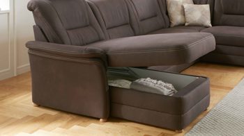 • Die Abbildung zeigt ein Wohnbeispiel, welches auch Dekoration sowie separat erhältliches Zubehör enthält. Im Lieferumfang enthalten ist eine Wohnlandschaft ohne Extras.