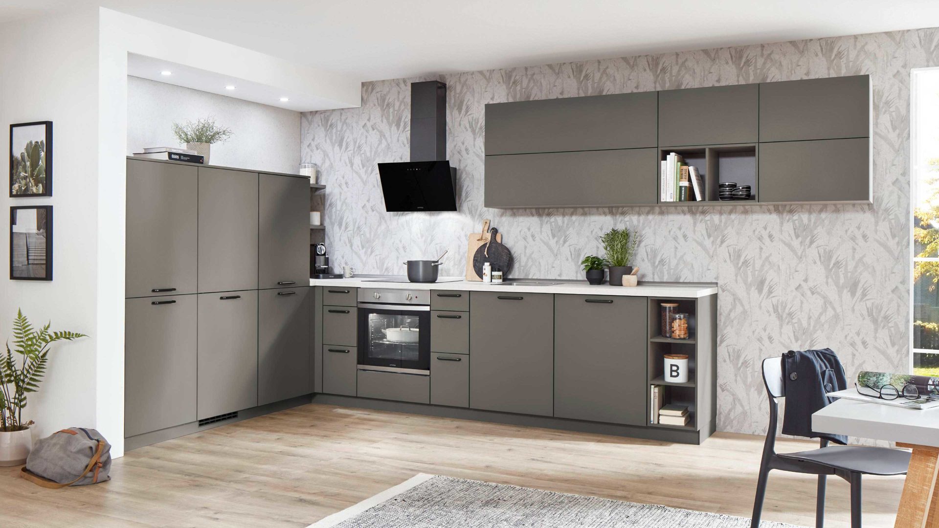 Die WERT KÜCHE® Carina lässt sich ganz nach Ihren Vorstellungen gestalten. Optional können Sie die Küche um weitere Elektrogeräte, eine passende Armatur, Innenausstattung oder Beleuchtung ergänzen. Dank der individuell plan- und ergänzbaren Küchenmöbel passt sich die Küche flexibel Ihren räumlichen Gegebenheiten an.