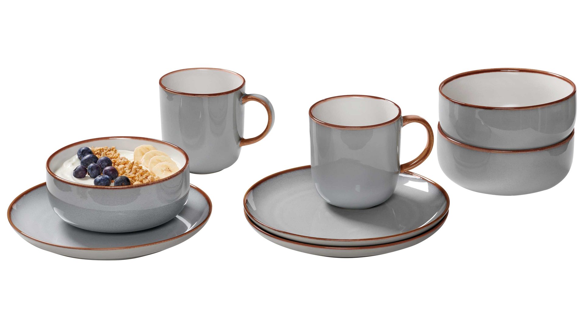 graues Steinzeug, kombiniert mit braunem Rand