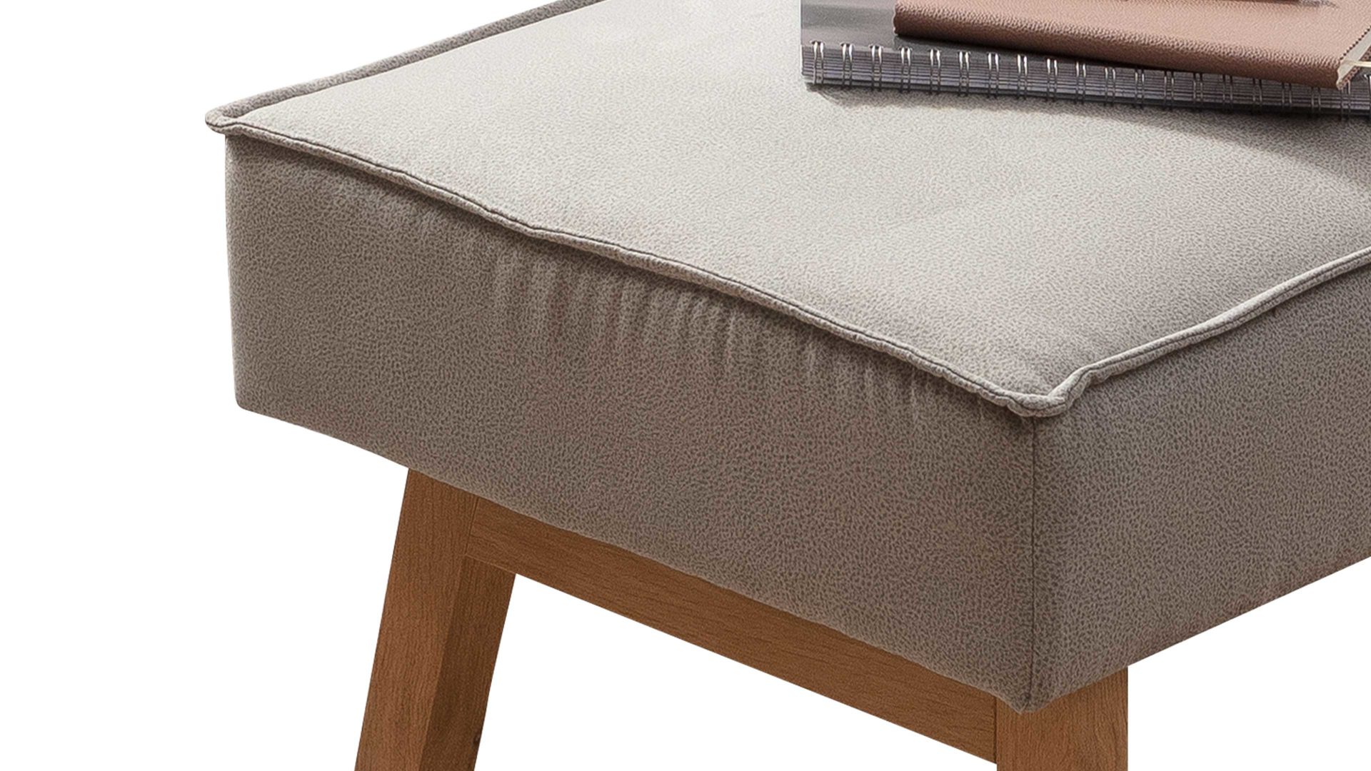 Die Polsterbank Lagos begeistert mit den hochwertigen Materialien, der erstklassigen Verarbeitungsqualität, dem stilvollen Design und dem hohen Komfort. Als stabile Basis fungiert ein lackiertes Eichenholzgestell, das natürlichen, warmen Charme verströmt und hervorragend mit dem hellgrauen Stoffbezug harmoniert. In Kombination sorgen die Materialien und Farben für eine moderne und gemütliche Ausstrahlung. Einen gelungenen Akzent setzt die umlaufende Ledernaht.