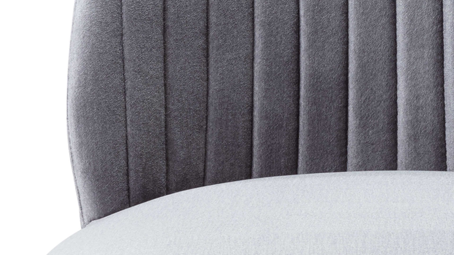 Der Polsterstuhl Eldar präsentiert sich modern und extravagant designt. Zudem ist er hochwertig verarbeitet und ungemein bequem. Mit der gelungenen Kombination aus dem edlen grauen Stoffbezug und dem schwarz lackierten Buchenholzgestell strahlt der Stuhl noble Eleganz und einladende Gemütlichkeit aus. Für das gewisse optische Etwas sorgt die aufwendig gesteppte Rückenlehne.