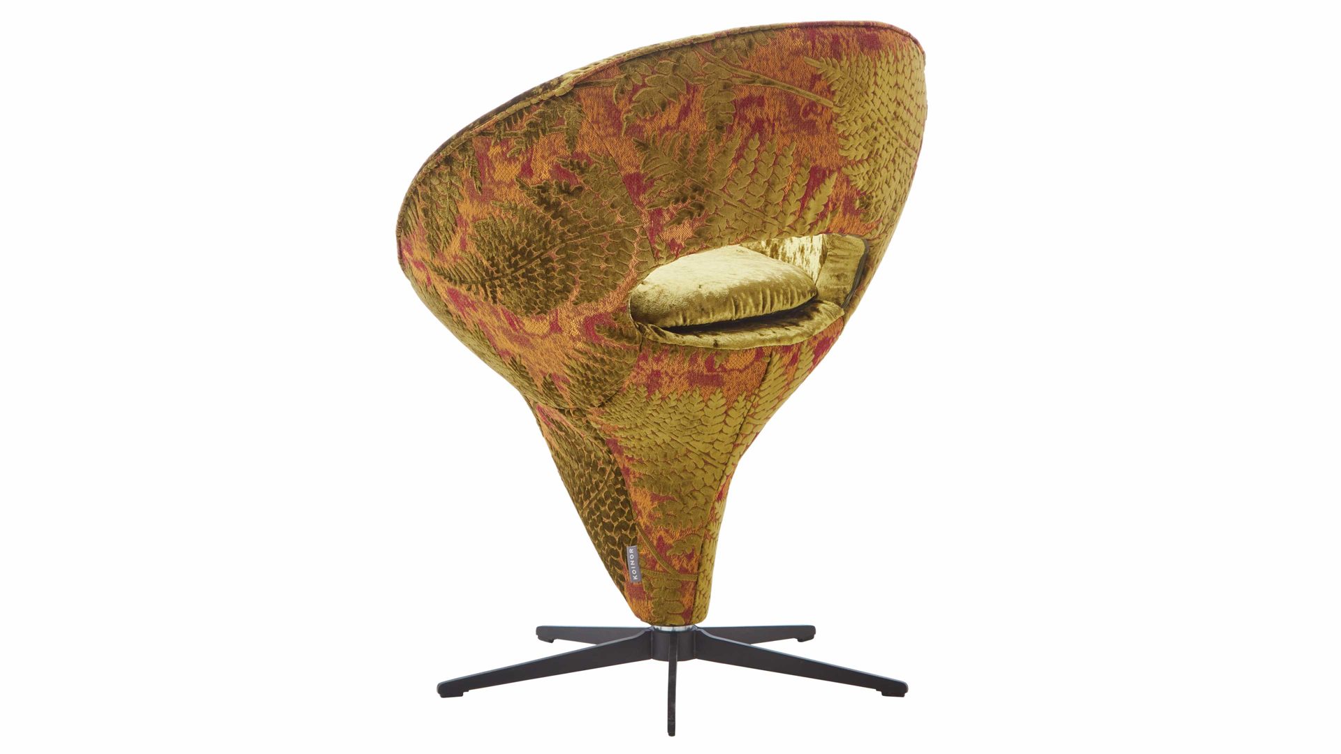 außen floral gemusterter Samtbezug mit grafisch-zweidimensionalen Farnmotiven