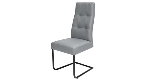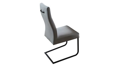 silbergrauer Stoffbezug in Lederoptik, kombiniert mit mattschwarz lackiertem Metall