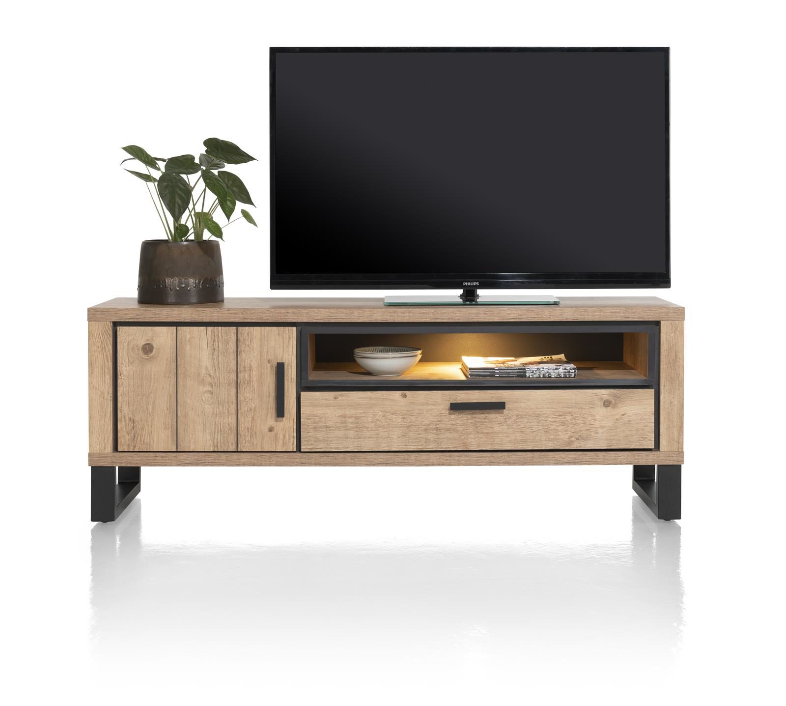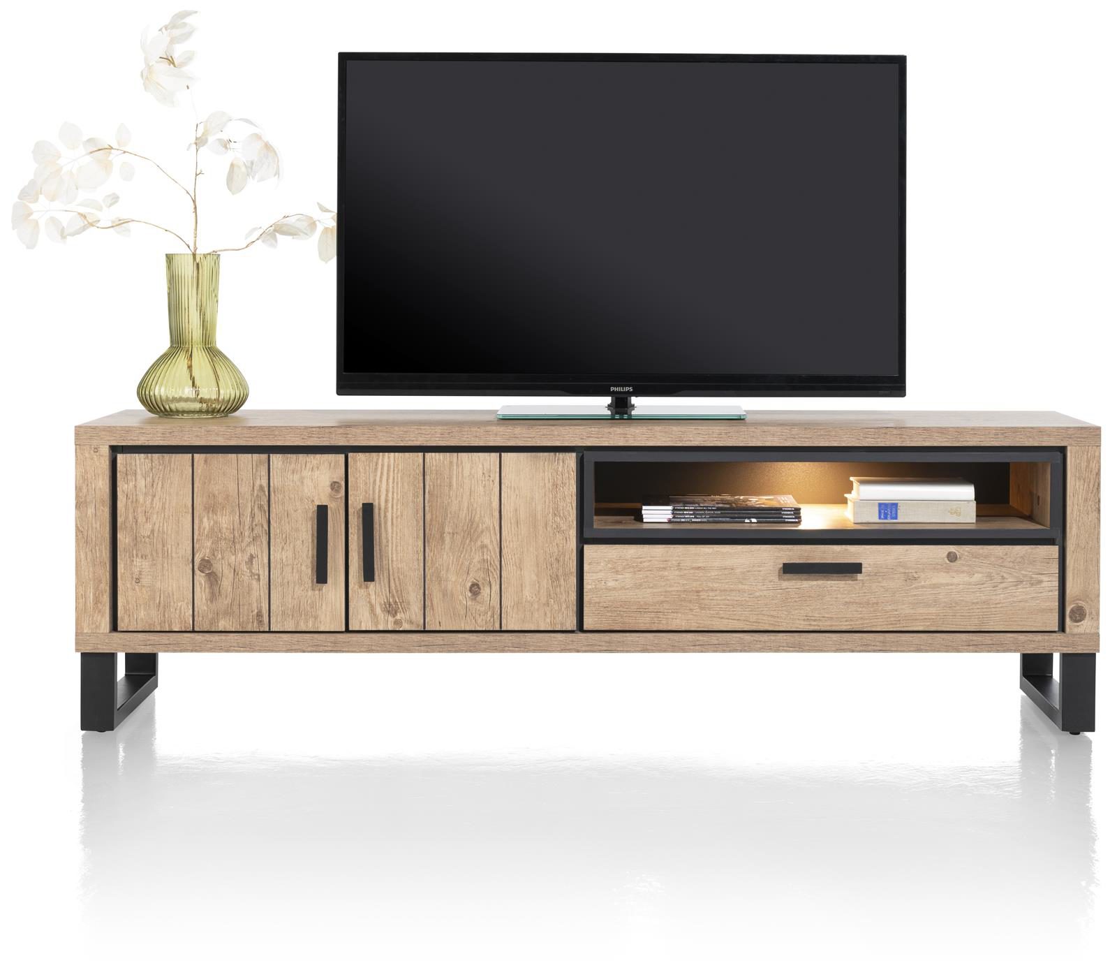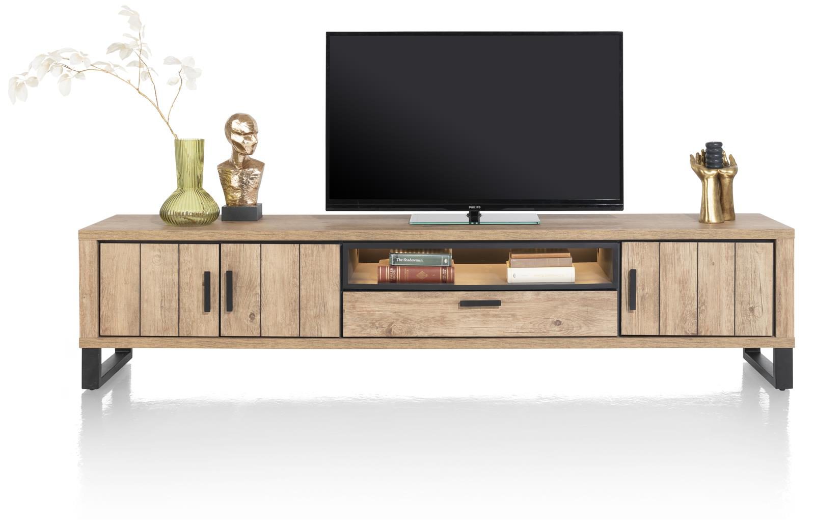 Zusätzlich verfügt das Highboard über zwei offene Nischen, die sich perfekt für die Präsentation von Dekorationsgegenständen oder Büchern eignen. Die integrierte LED-Beleuchtung setzt Ihre Lieblingsstücke gekonnt in Szene und schafft eine angenehme Atmosphäre im Raum.
